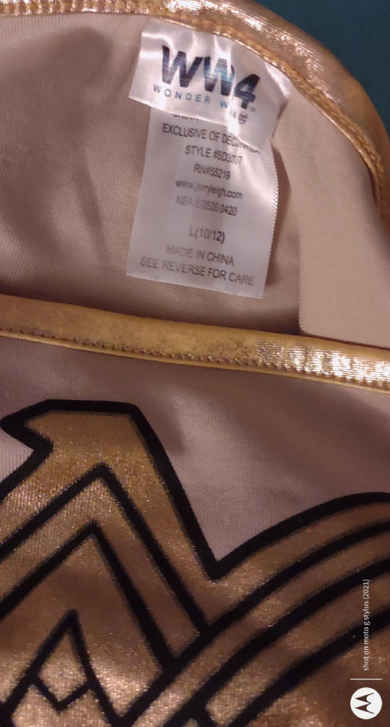 Wonder Woman dress in size Large (10/12). It's in great condition and ready for a new superhero! The dress features the classic Wonder Woman logo and design it's a costume or can be worn for dress up.
