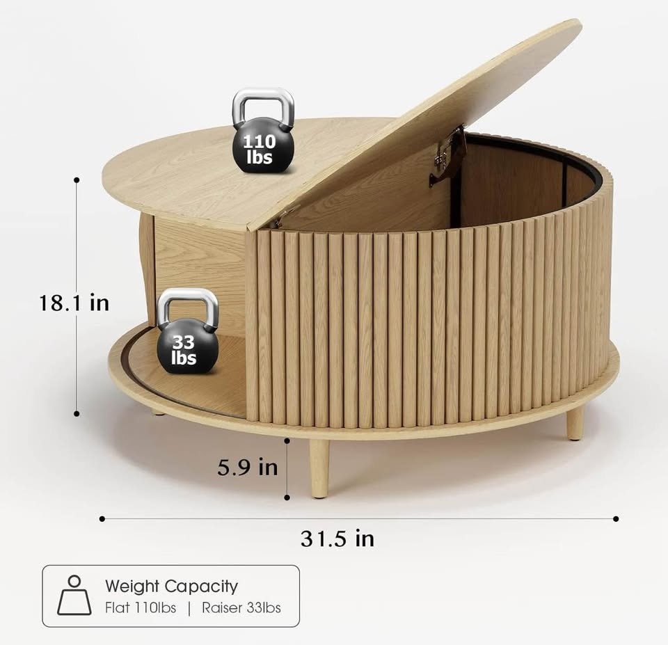 31.5 inch round side table with storage, mid-century modern coffee table with shelf and sliding door, small dining table with living room/ 2 colors available