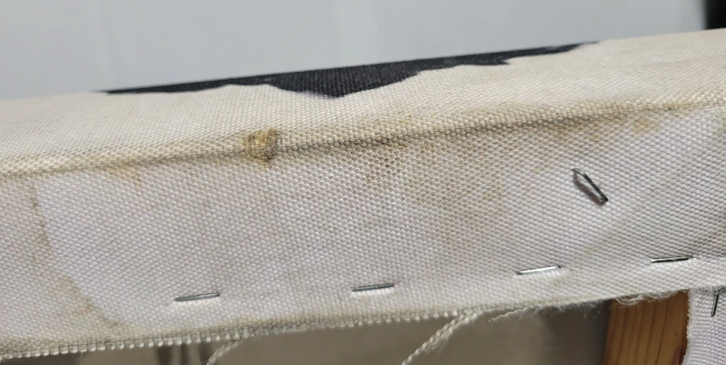 Canvas art print featuring a mugshot style image. Some staining and wear are present on the fabric edges. Ready to hang artwork.