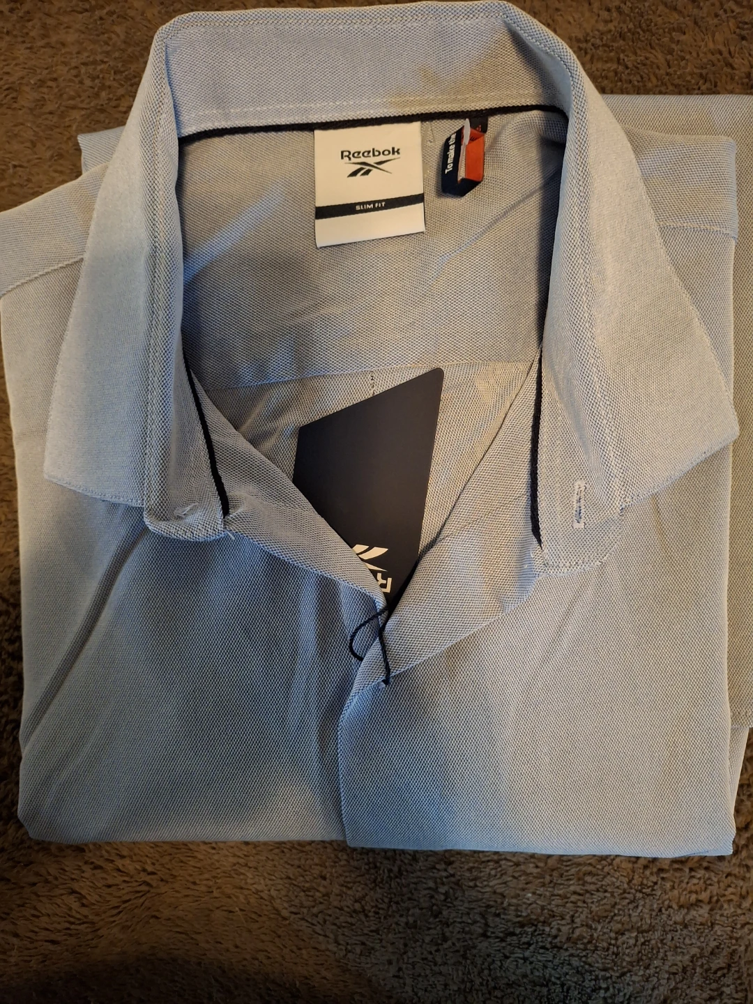 I'm selling a brand new Reebok slim fit shirt! It's a light blue color and still has the tags on it. Perfect for a casual or slightly dressy occasion. Feel free to reach out if you have any questions!