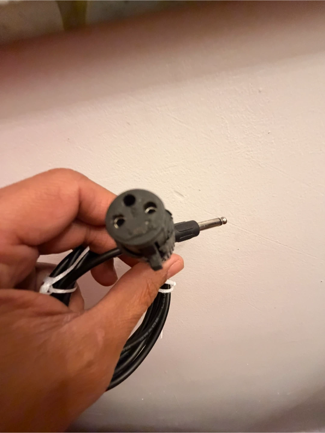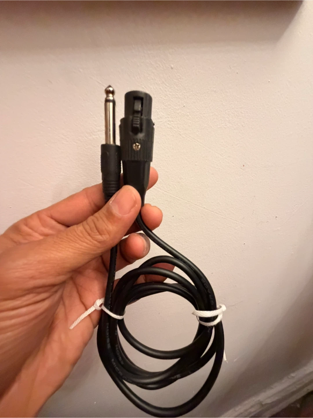 This is a black audio cable microphone. with an XLR connector on one end and a 1/4 inch connector on the other. It's great for connecting microphones or instruments to audio equipment. The cable is approximately 10 feet long.