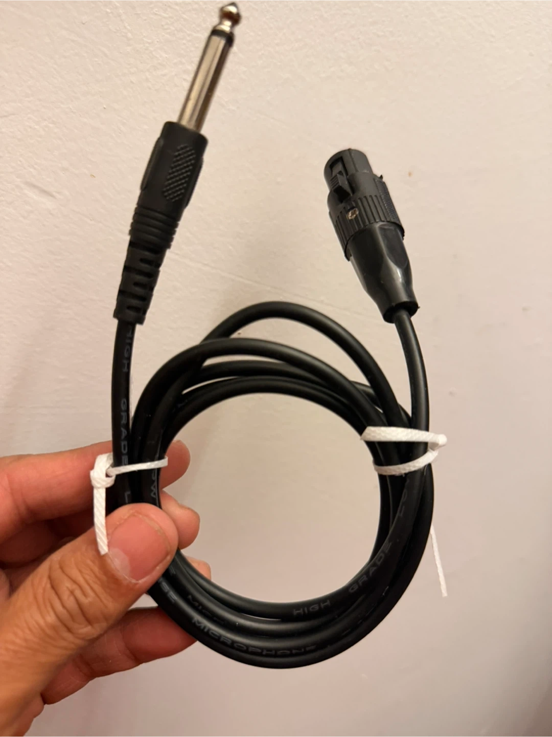 This is a black audio cable microphone. with an XLR connector on one end and a 1/4 inch connector on the other. It's great for connecting microphones or instruments to audio equipment. The cable is approximately 10 feet long.
