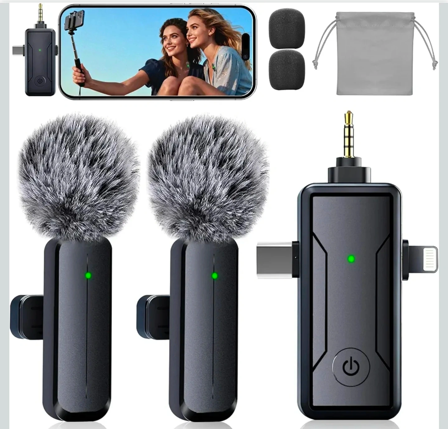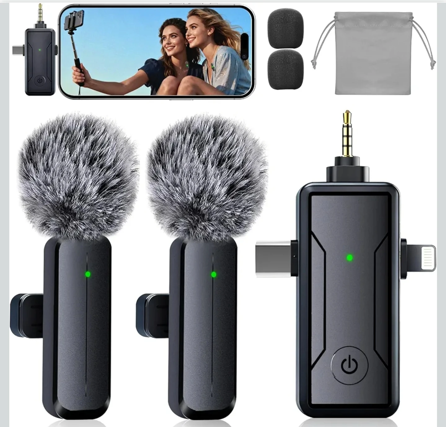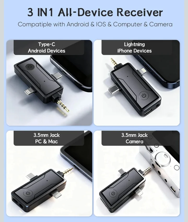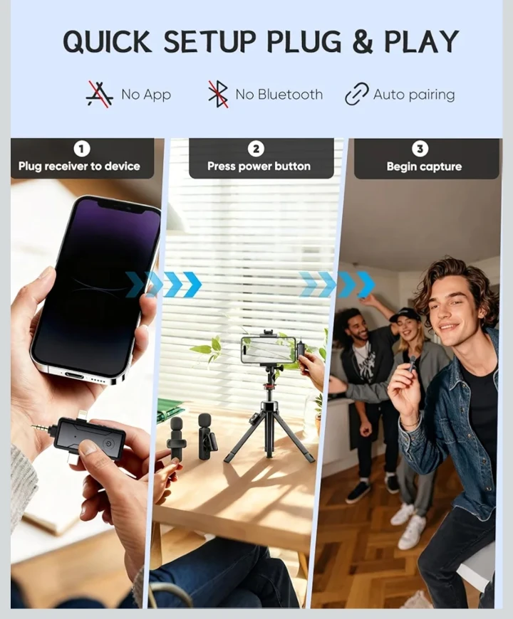 Wireless Mini Lavalier Microphone for iPhone - 3 in 1 Bluetooth Microphone with Noise Reduction, Plug & Play Lapel Mic for iPad Android, 360°Clip Mic for Video Recording Vlog YouTube TikTok Podcast