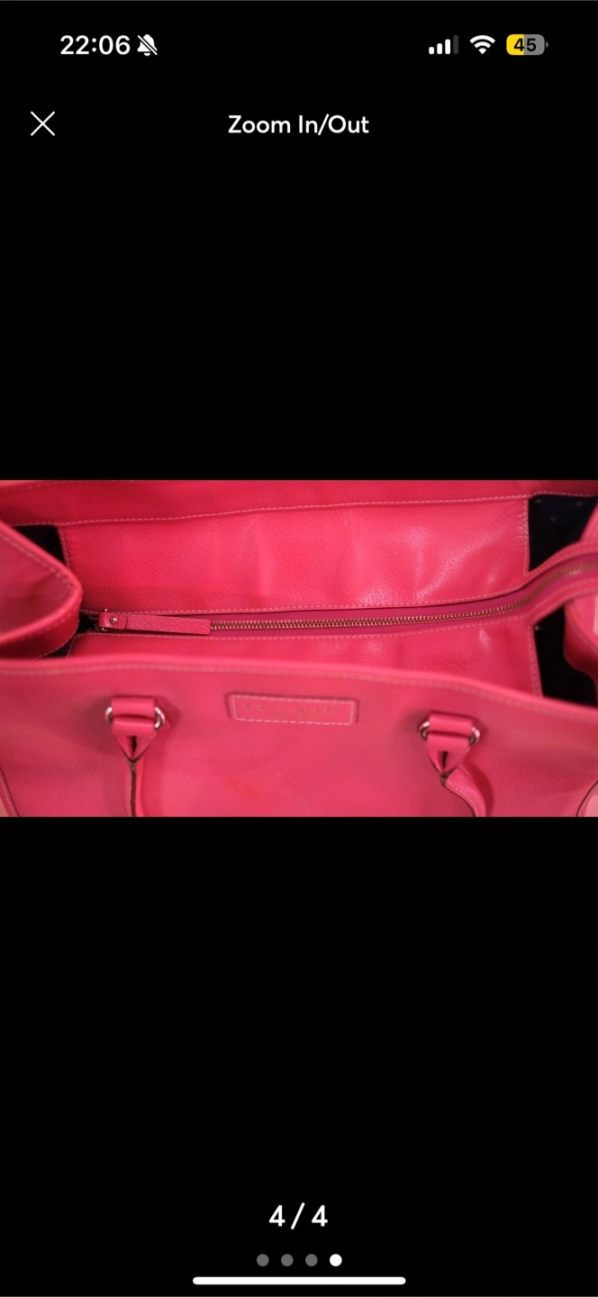 Features dual top handles, structured silhouette, and spacious interior with a zip pocket for secure storage. The leather is in great shape overall with some minor wear/scuffs on the front—see photos for detail. Stylish, functional, and perfect for everyday use, errands, or work.