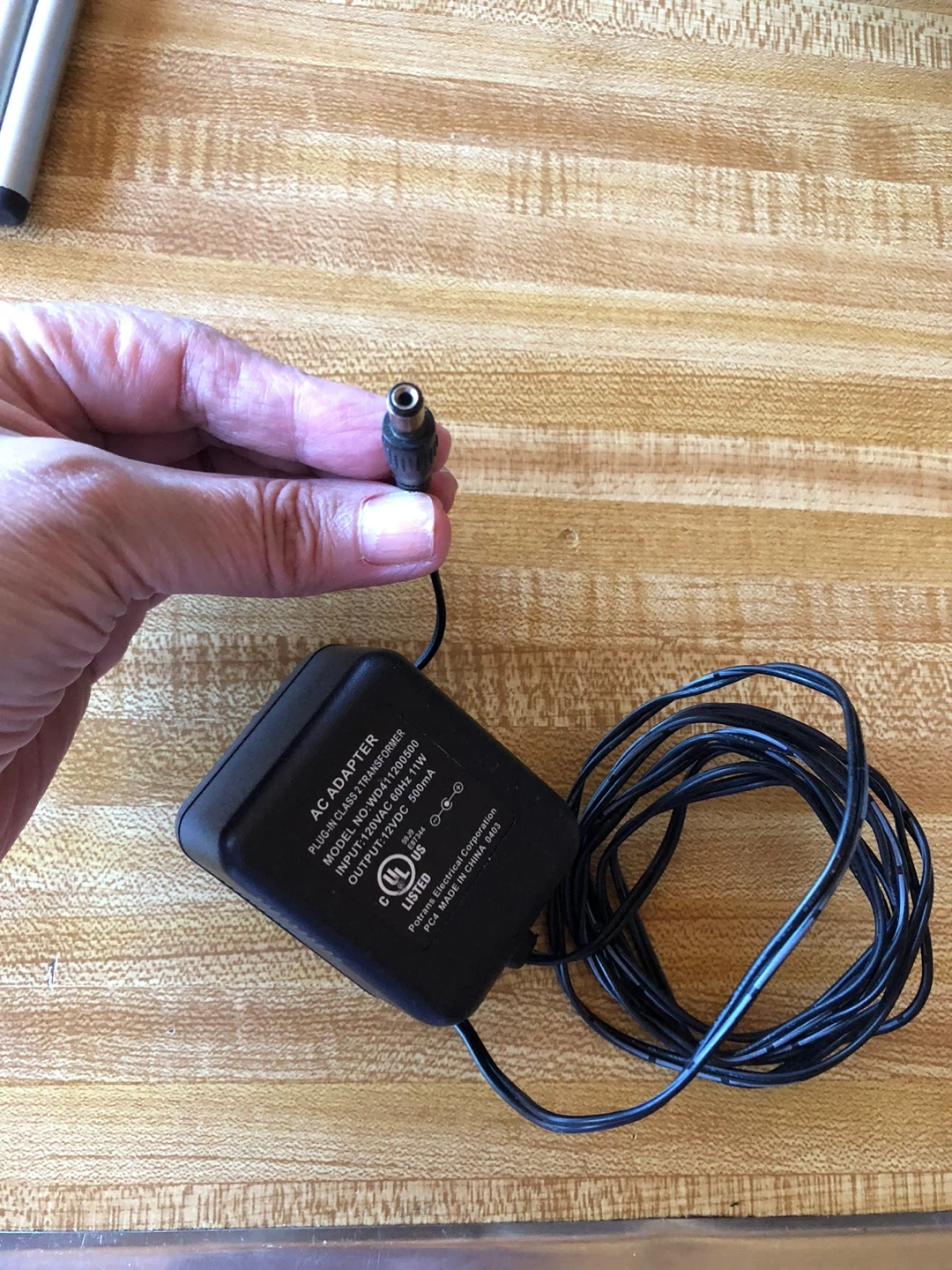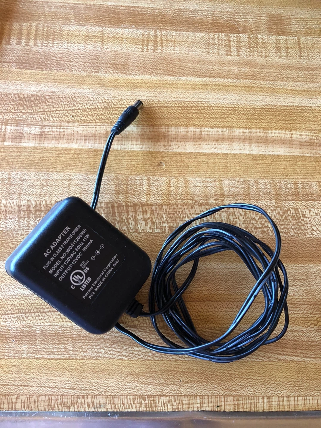 This is a 12V DC 500mA AC adapter. Input is 120V AC, 60Hz, 11W. It's a plug-in transformer.