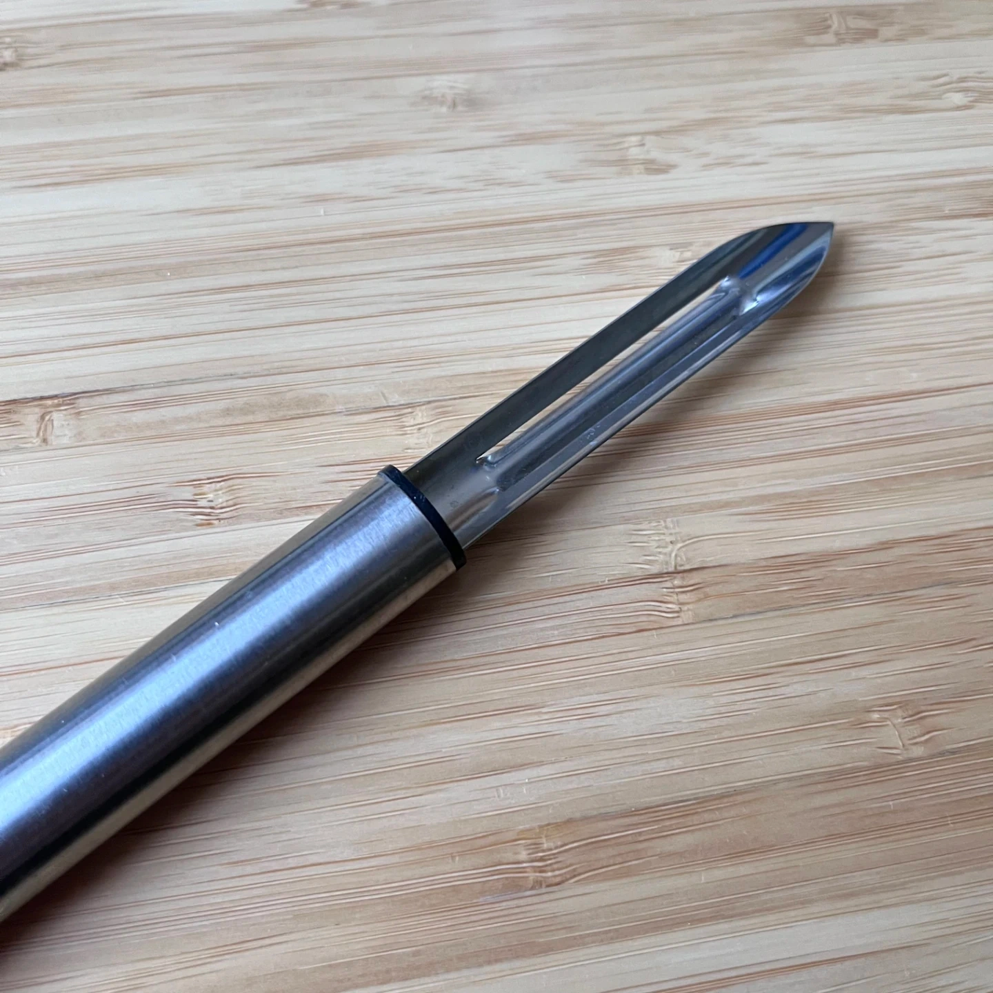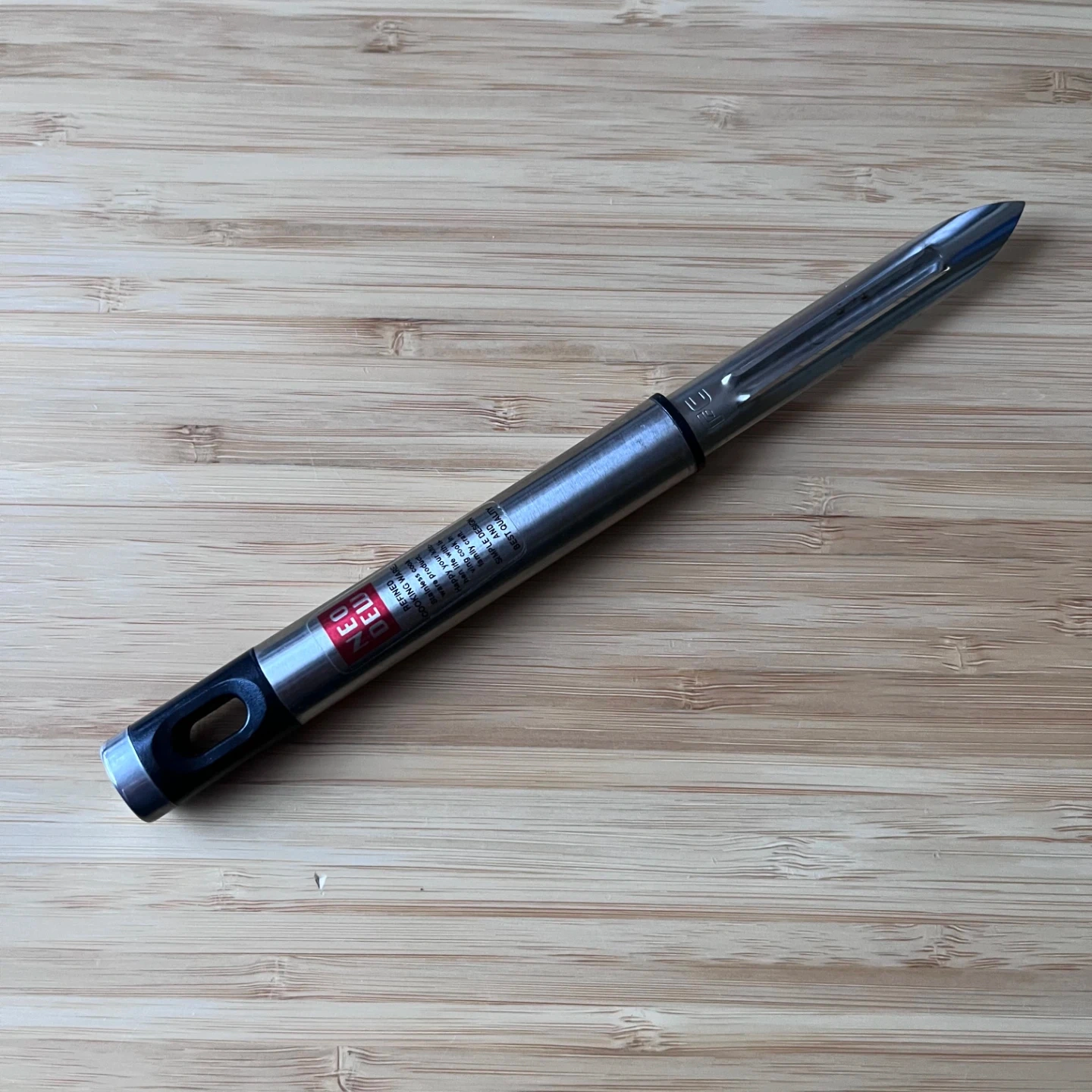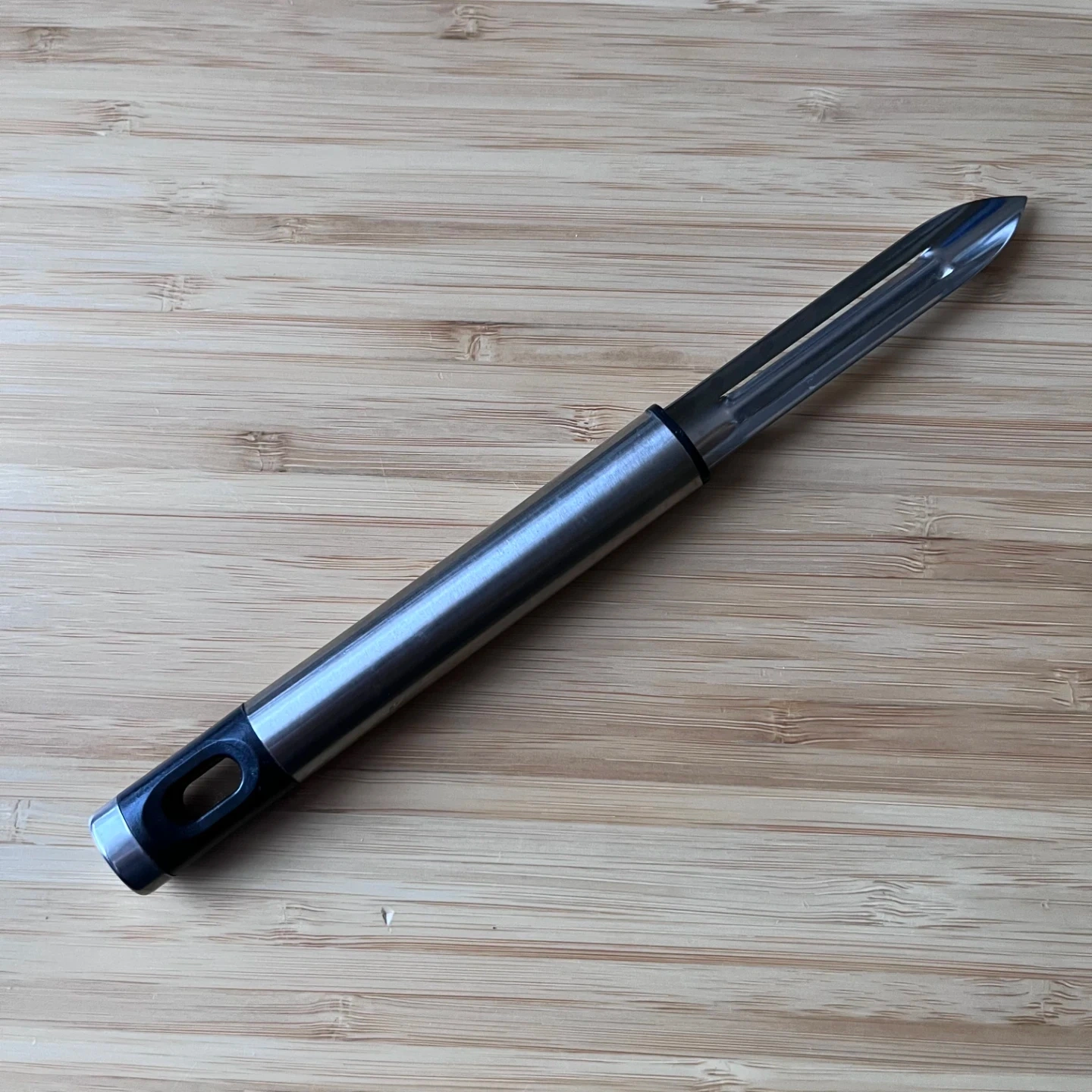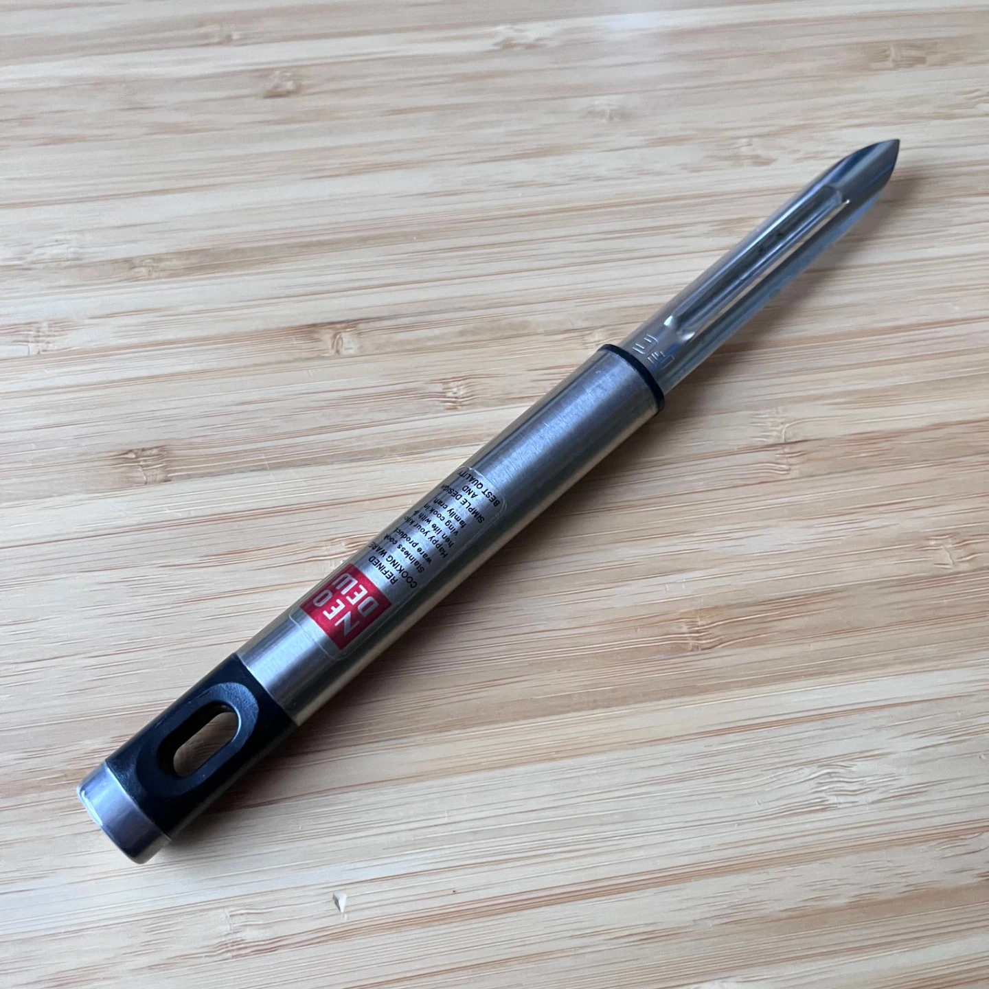 This NEO+DEU peeler features a stainless steel blade and handle. It's great for everyday kitchen tasks.
