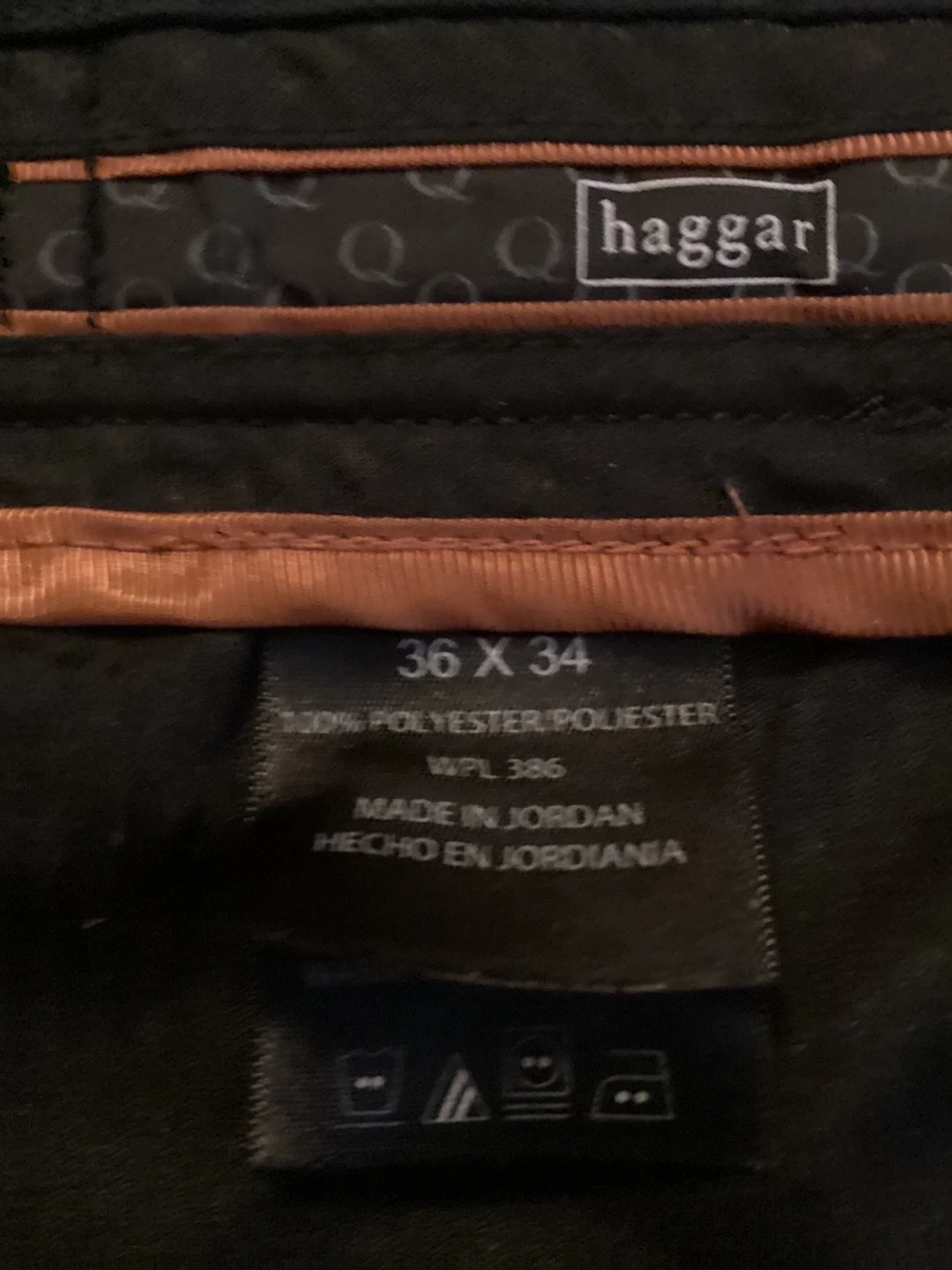 Selling a pair of Haggar men's dress pants in size 36x34. They are a nice black color and made of 100% polyester