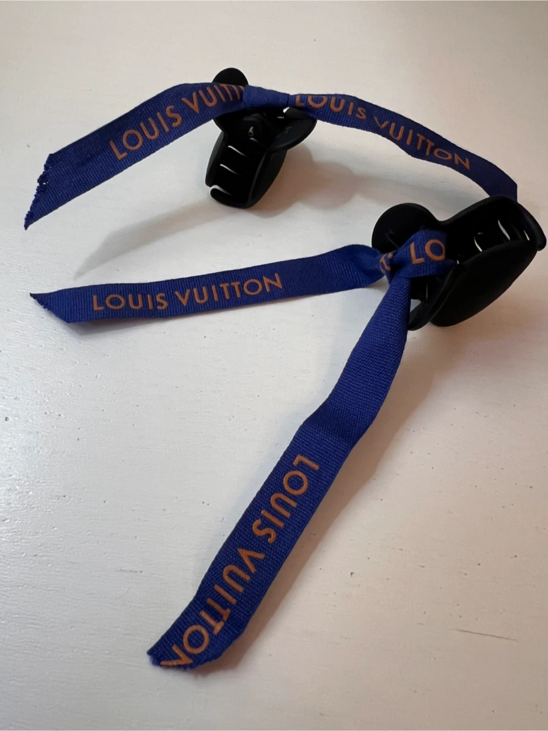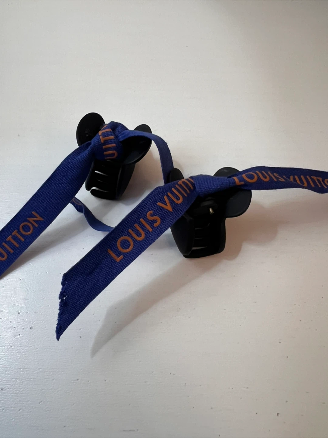 45Here are some cute hair clips embellished with Louis Vuitton ribbon! These re-purposed ribbon/ embellished hair clips are in great condition to accessorize your hair or add some flair to an item. This was designed and handmade in Brooklyn in an effort to make sure that everything gets the best possible use.
