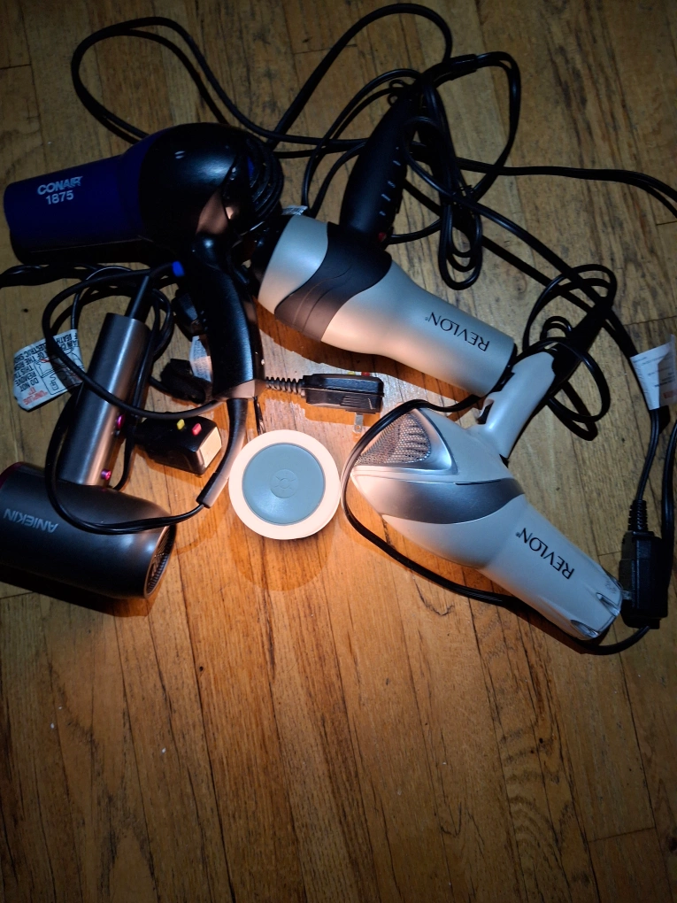 I have a few hair dryers for sale. There's a Revlon, a Conair 1875, and one from Aniekin. They're all used but still work well!