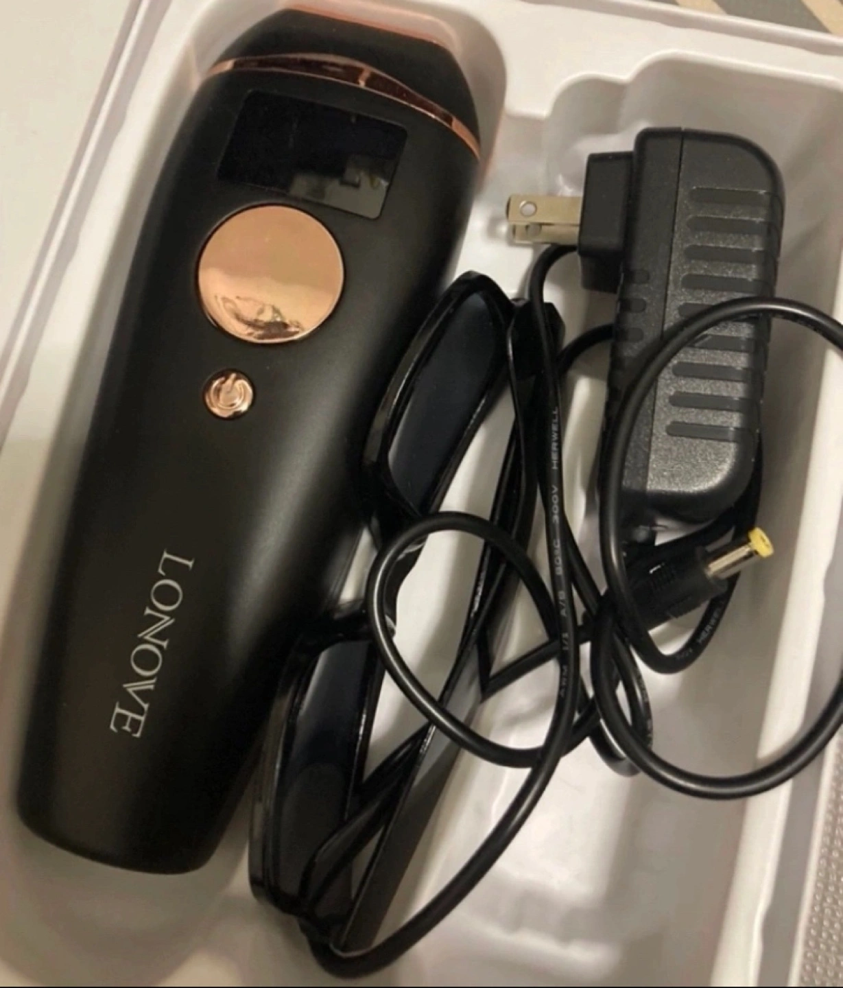 Includes a power adapter, cord, and protective glasses. Black with rose gold accents. pick up and by cash 🥕