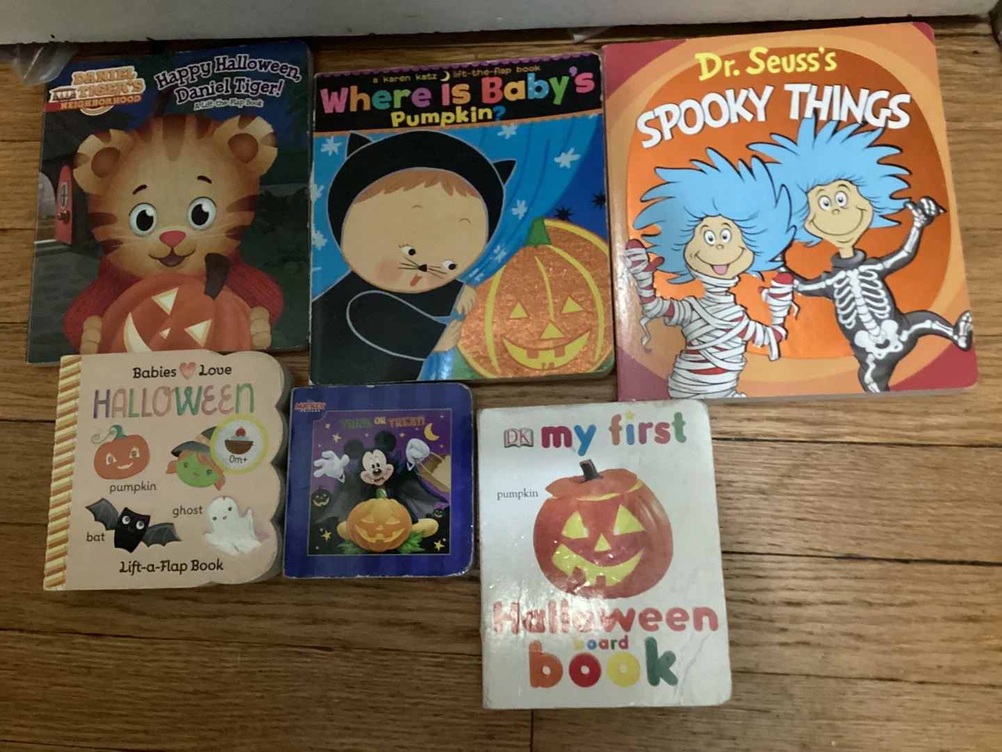 Selling a bundle of Halloween-themed board books! Includes titles like: - Daniel Tiger's Happy Halloween - Where is Baby's Pumpkin? - Dr. Seuss's Spooky Things - Babies Love Halloween - My First Halloween Board Book