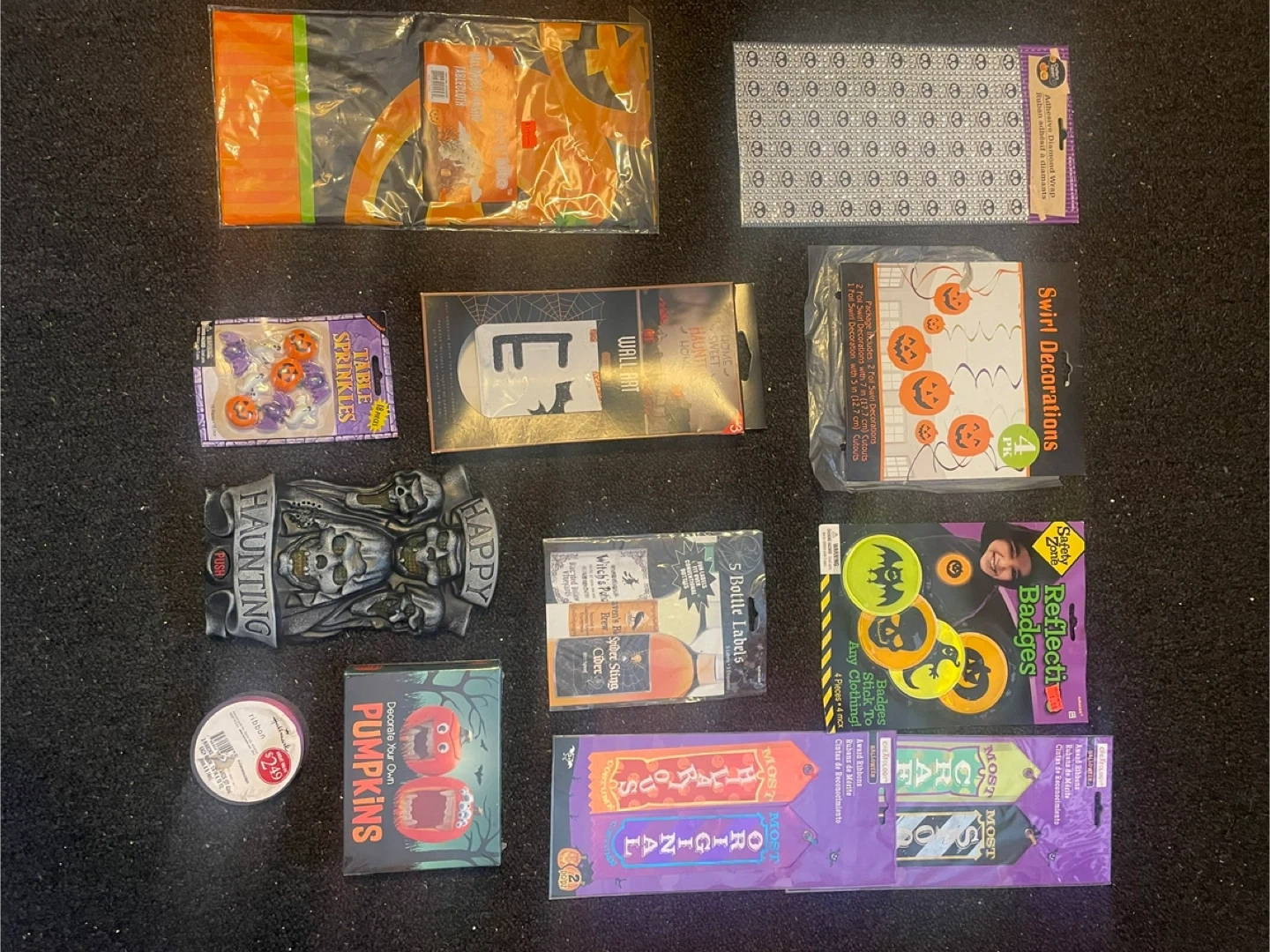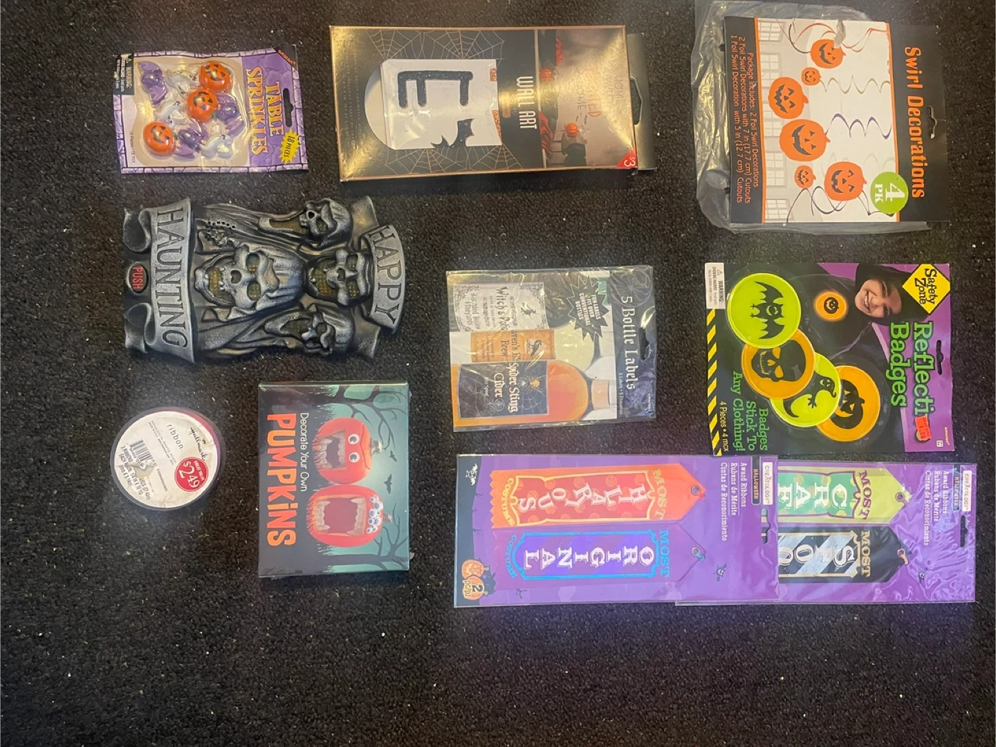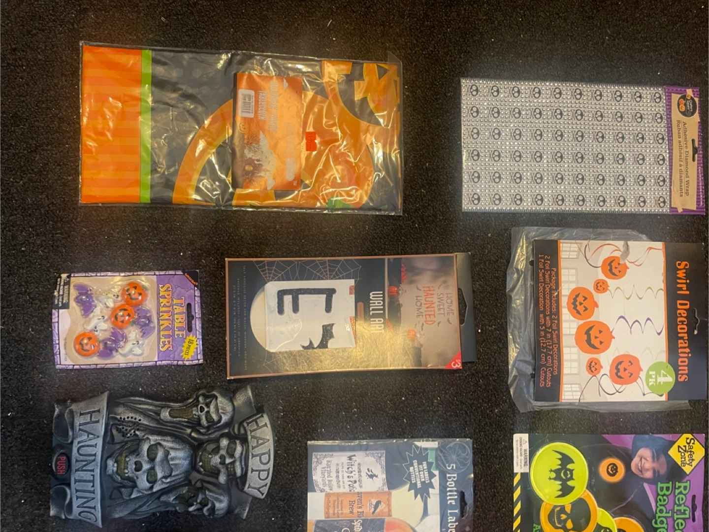 66Selling a bundle of Halloween decorations! Includes table sprinkles, wall art, swirl decorations, bottle labels, and more. Perfect for getting your home spooky for the season!