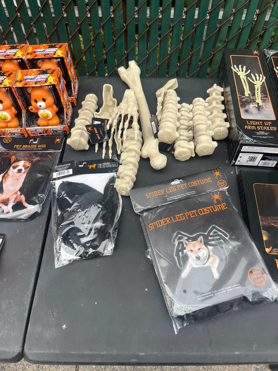 Getting ready for Halloween? I have a spider leg pet costume (one size fits most) and some skeleton bones to add to your spooky decor! Also available are Care Bears Ooshies and light-up arm stakes.