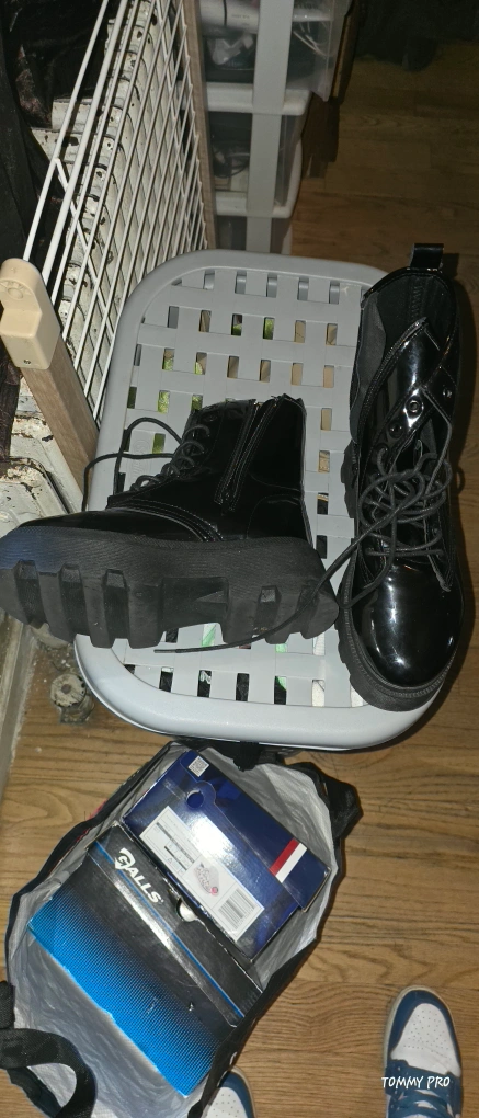 Selling a pair of Halls black combat boots. They come with the original box. These stylish boots are perfect for adding an edgy touch to any outfit!