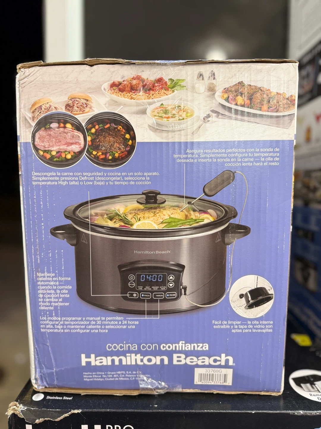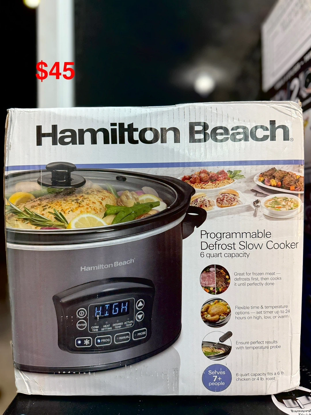 Hamilton Beach Portable 6 Quart Set & Forget Digital Programmable Slow Cooker with Lid Lock, Temperature Probe, Dishwasher Safe Crock & Lid, Black Stainless Priced Half from Retail. Store Pickup only in Jamaica, Queens 11433