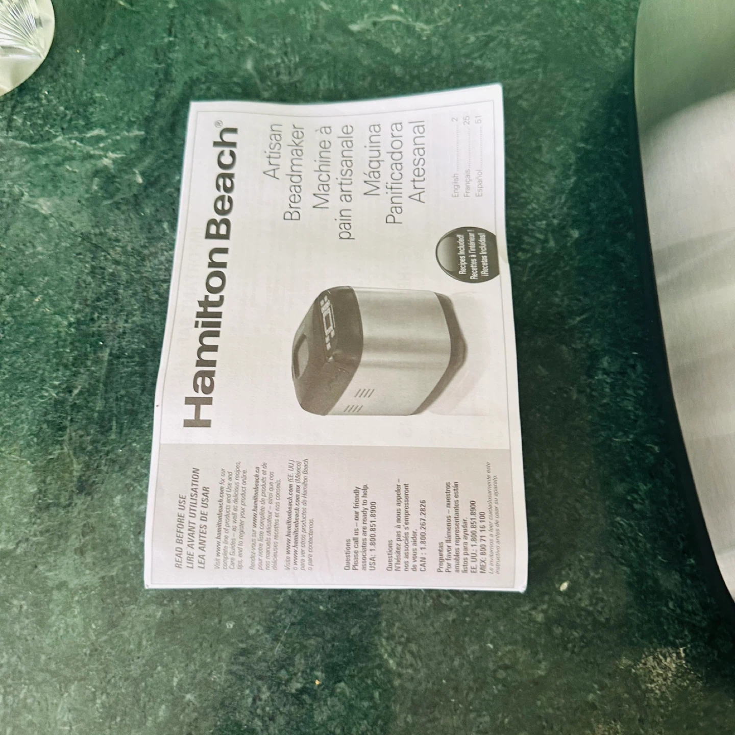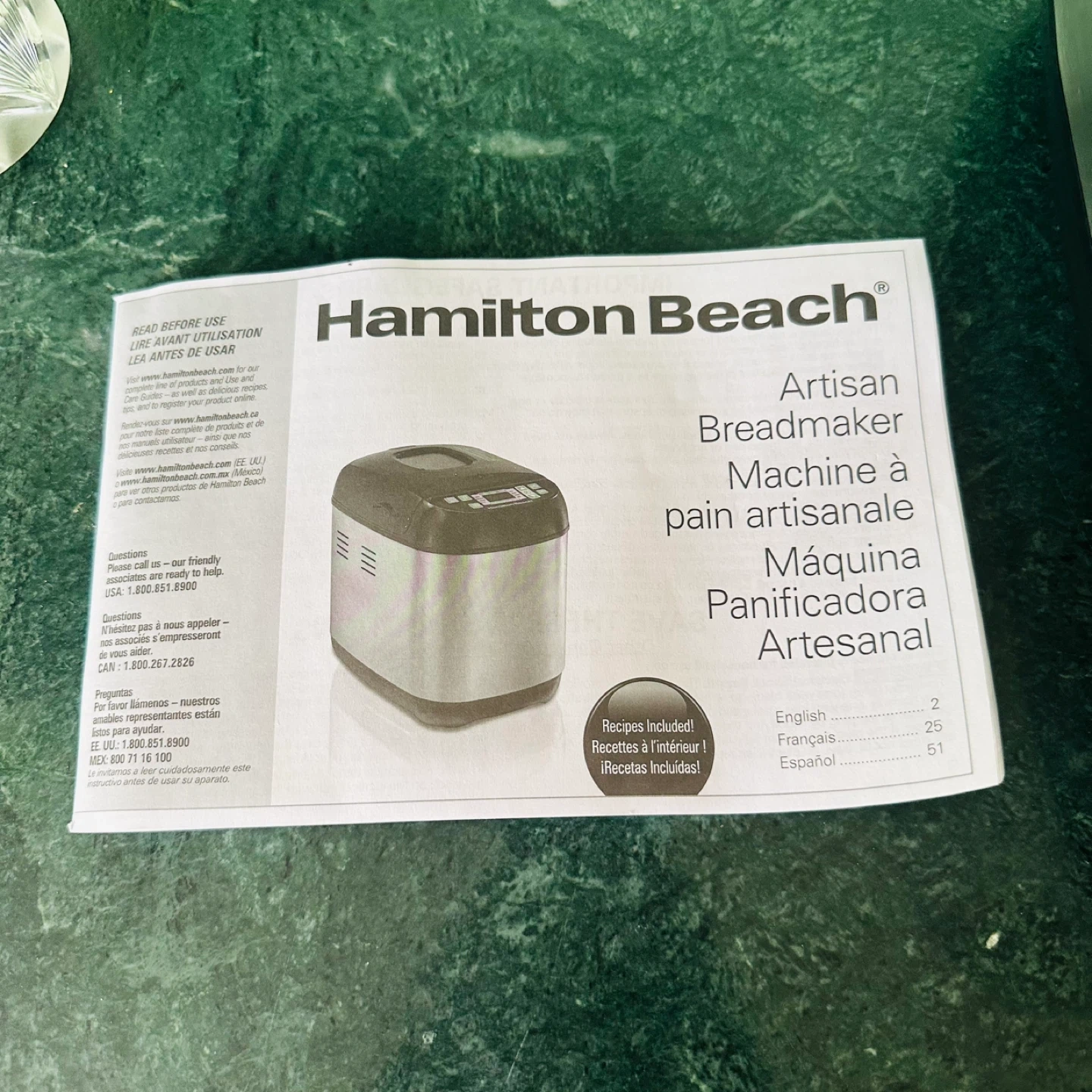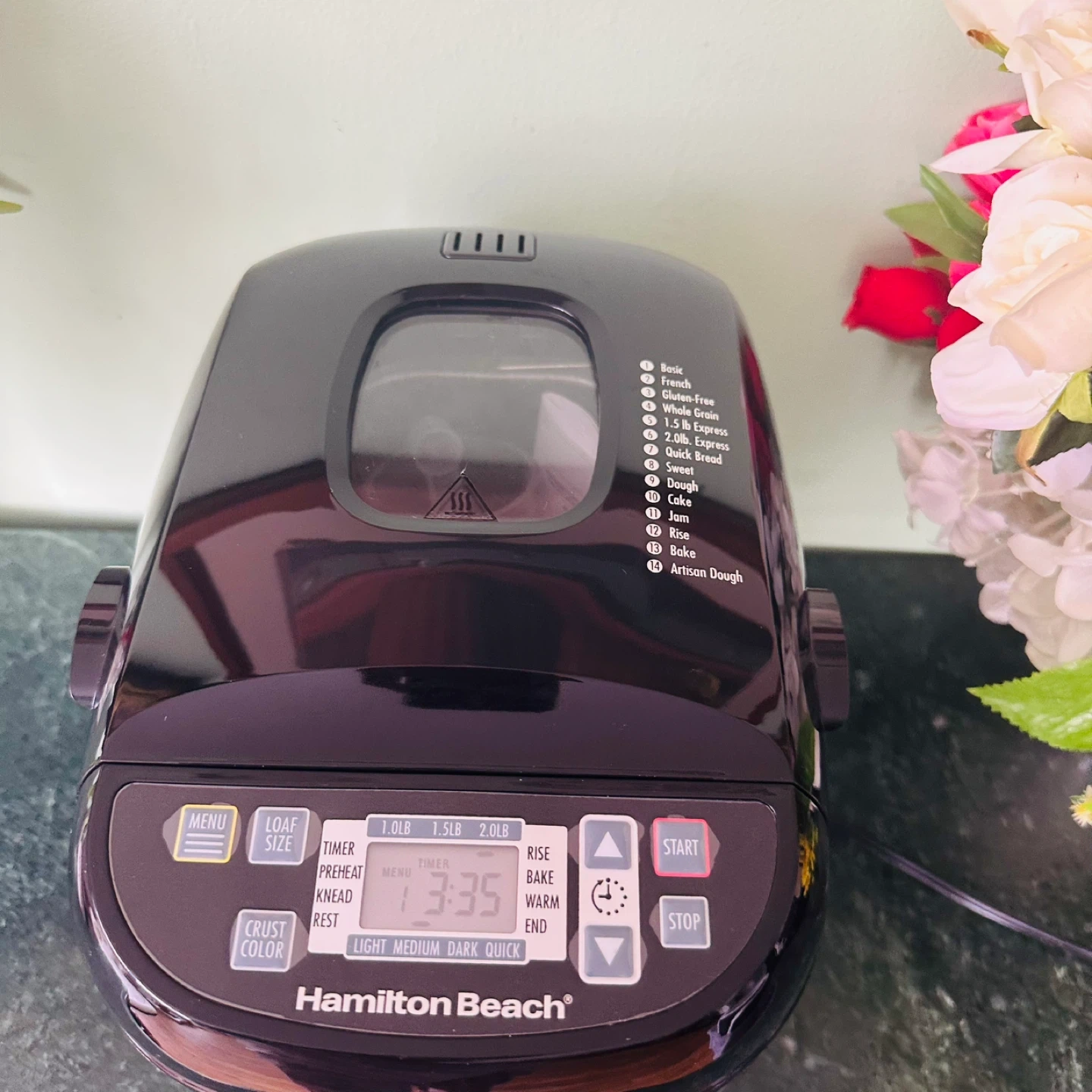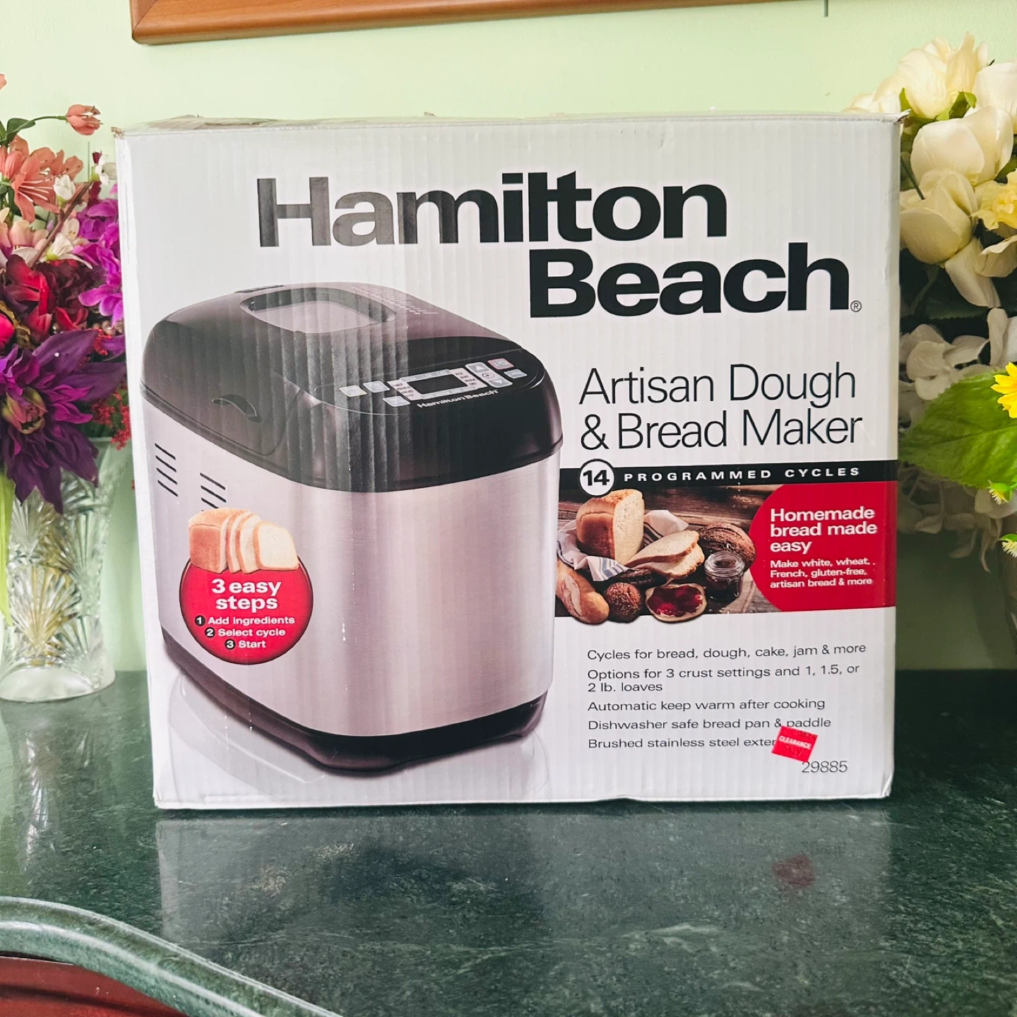 75I'm selling a Hamilton Beach Artisan & Bread Maker. It has 14 programs and offers cycles for bread and dough. You can select from 3 crust settings and make 2 lb loaves. It also has an automatic keep warm function and a dishwasher-safe bread pan