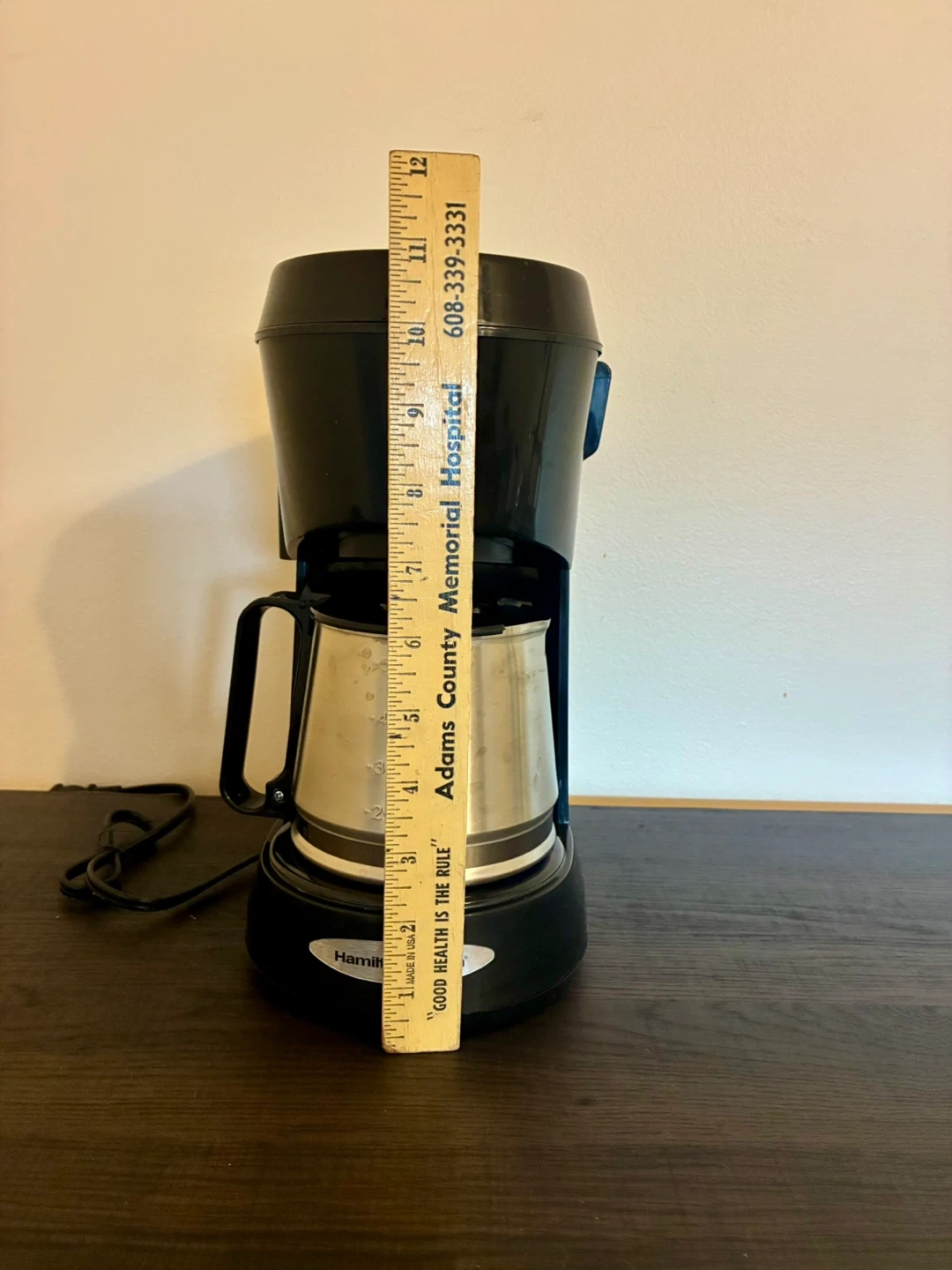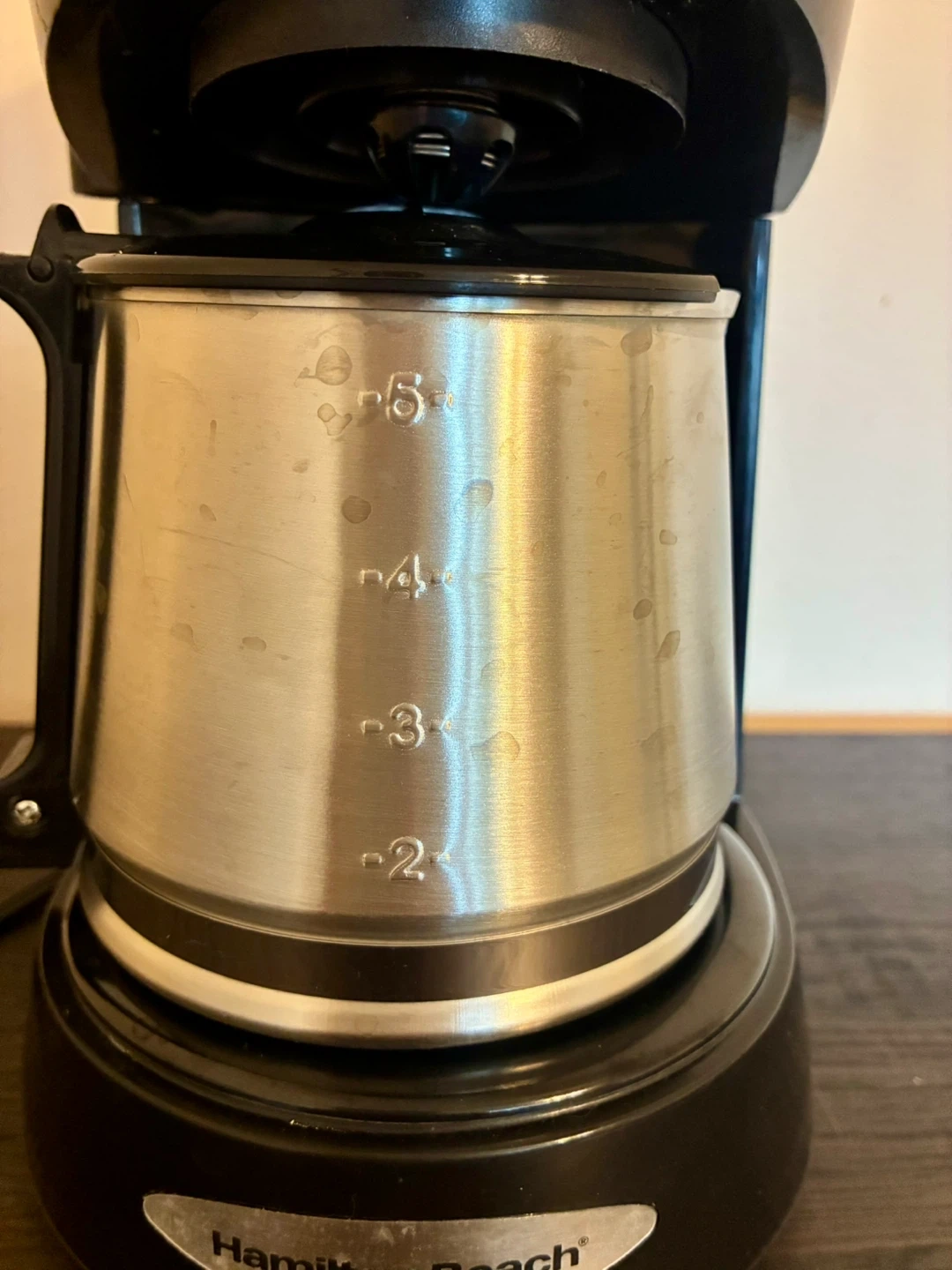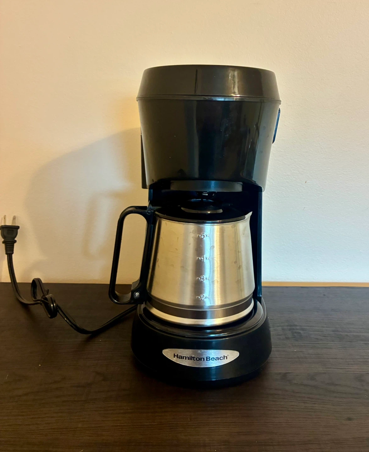 75Selling a Hamilton Beach coffee maker. It's in great condition and ready to brew your favorite coffee. The carafe is stainless steel and the machine is black