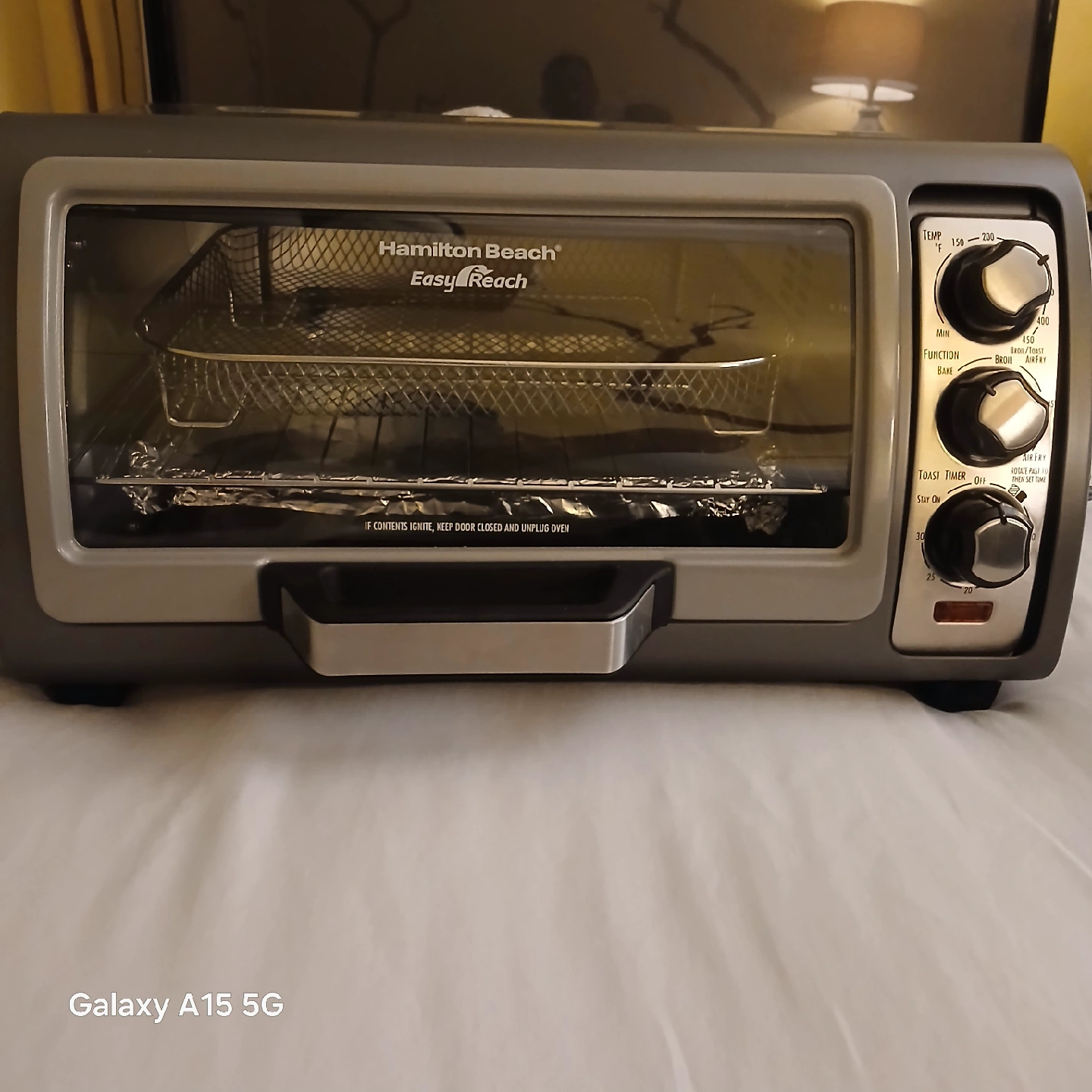 60Selling a Hamilton Beach Easy Reach toaster oven! It's in great condition and ready for a new home. This toaster oven has a variety of functions including bake, broil, toast, and air fry