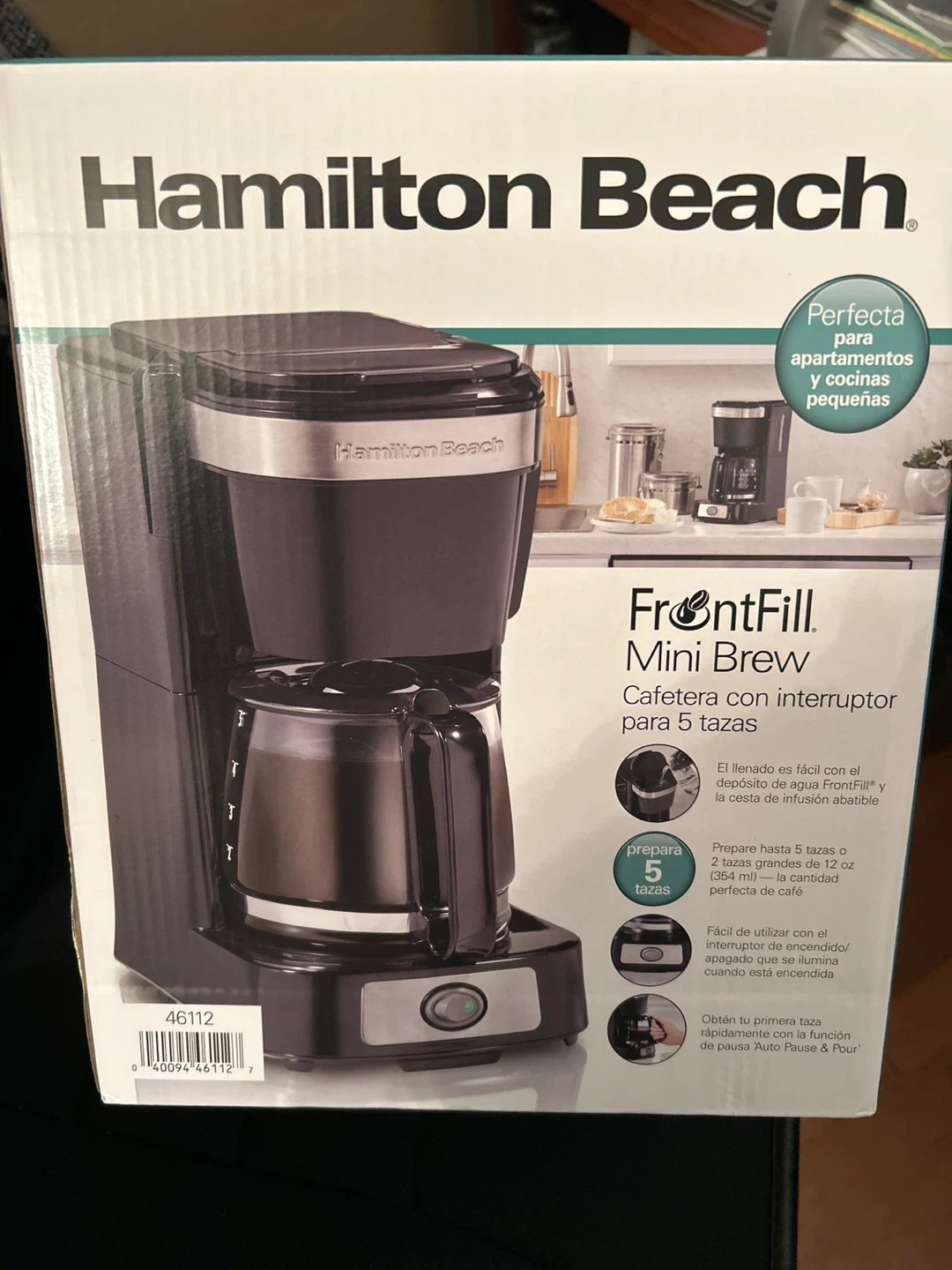 60I'm selling a Hamilton Beach FrontFill Mini Brew coffee maker! It's perfect for brewing up to 5 cups. The FrontFill water reservoir and swing-out brew basket make it easy to fill and clean. It also features an auto pause and pour function