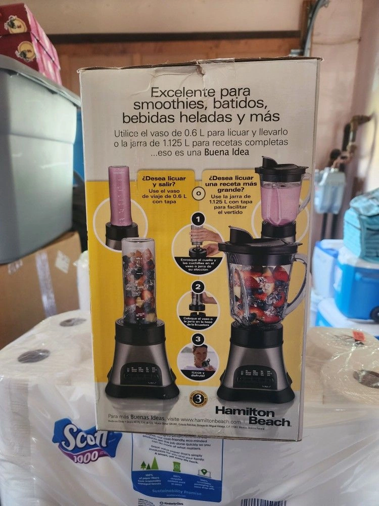 Model # 58161. Selling a Hamilton Beach Wave Crusher Blender! It comes with a blend-in travel jar. This blender is perfect for making smoothies, shakes, and icy drinks. It has a 700-watt peak-power motor and a mess-free lid spout for easy pouring. Black and silver, brand new. Never used. The box is still taped shut.