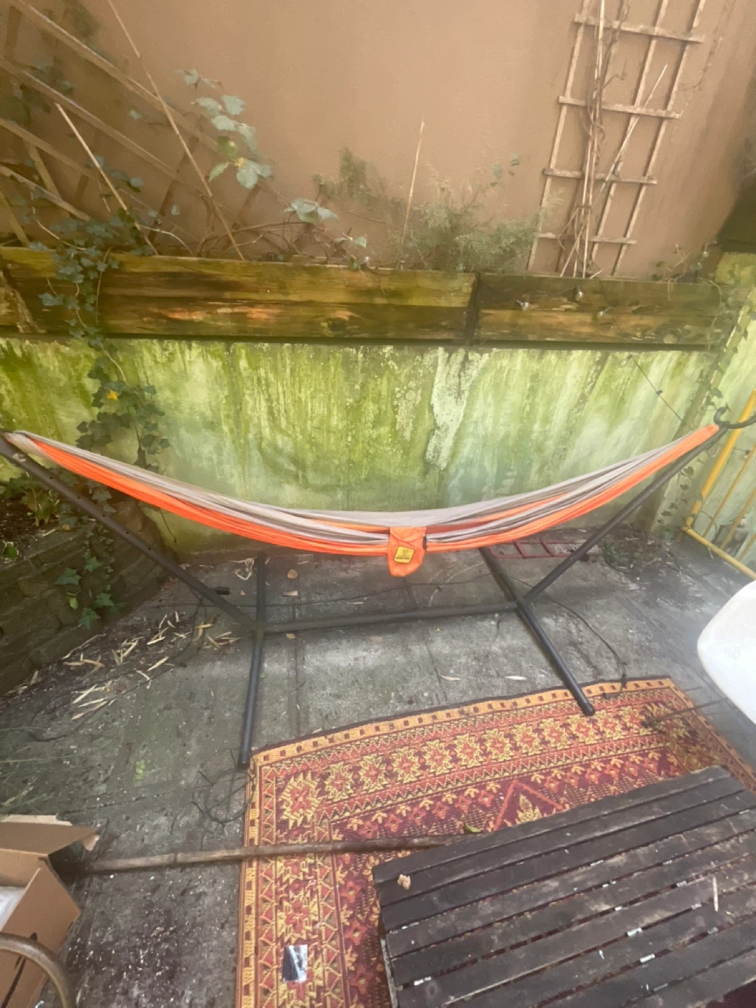Selling a hammock with a stand. It's in good condition and ready for relaxation in your backyard or patio