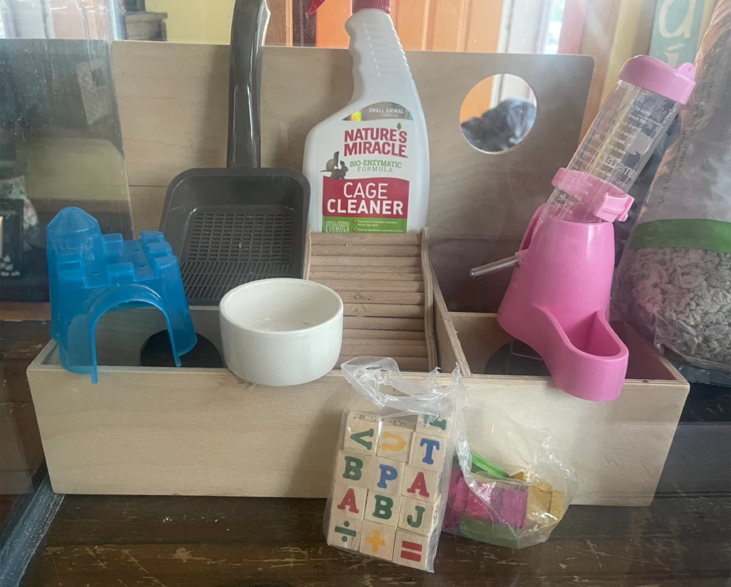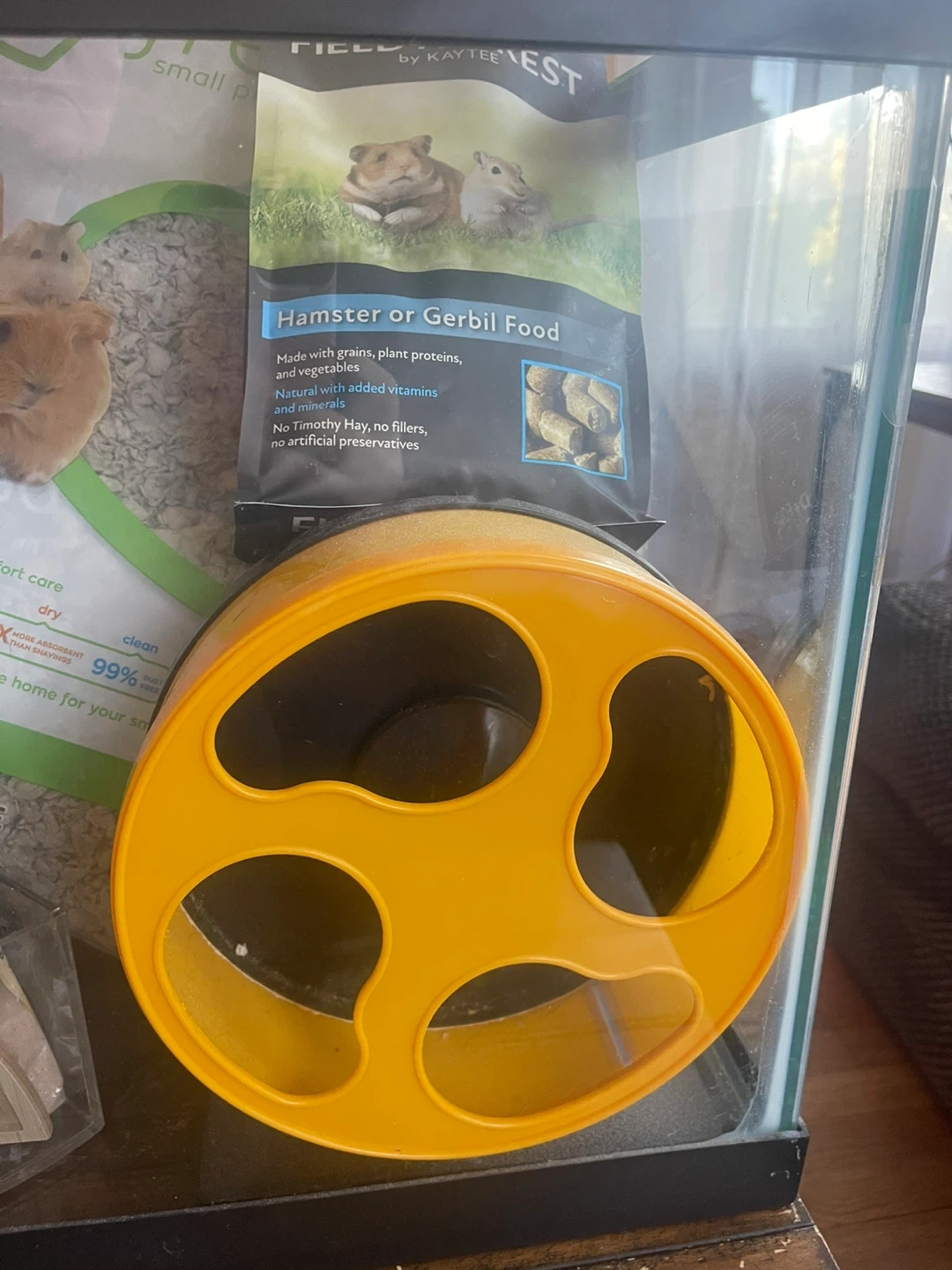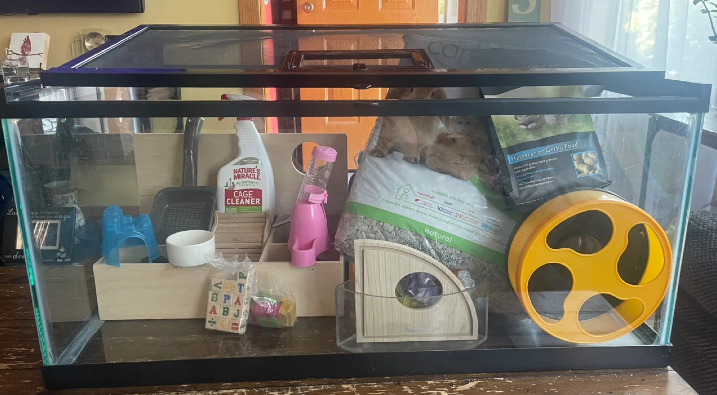 10Selling a hamster, gerbil or guinea pig cage that comes with a variety of accessories! It includes a food bag, a wheel, a water bottle, a house and some toys! Also includes cage cleaner to keep things tidy! Make your furry friend happy and give them a great place to call home!