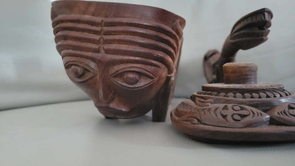 Unique hand-carved wooden box with intricate designs. It's in great condition and ready for a new home! Perfect for storing small items or as a decorative piece pick up in Harwood heights near harlem and Lawrence.