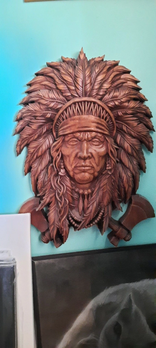 15Beautiful hand carved Indian chief. This beautiful piece is over 18 inches and comes directly from Spain.