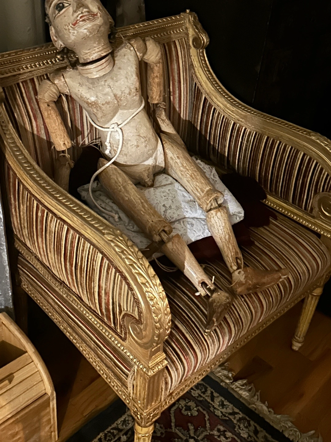 Approximately 2.5 feet tall with original handle and hand carved and painted body head earrings and limbs. For some reason made in the nude. … ITS A BOY! lol.