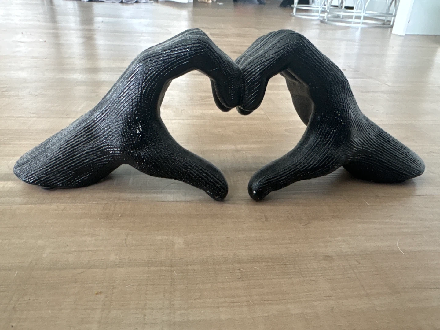 Selling a unique hand heart sculpture! It's a cool piece to add to your home decor. The sculpture is black and in good condition, ready to find a new home