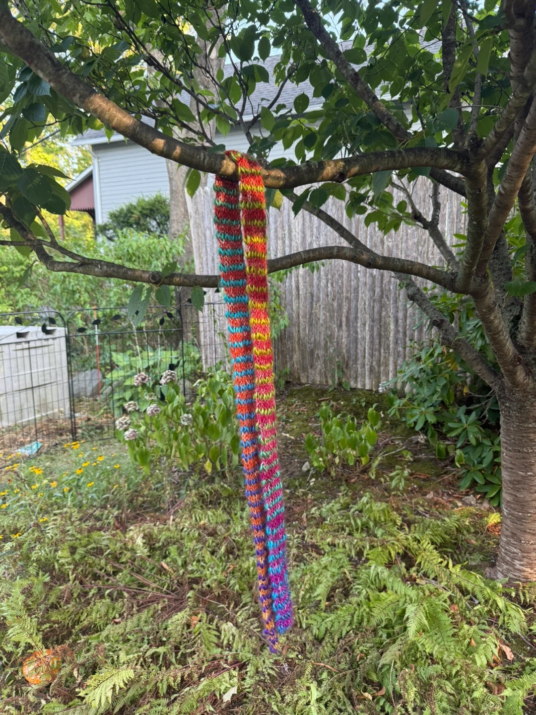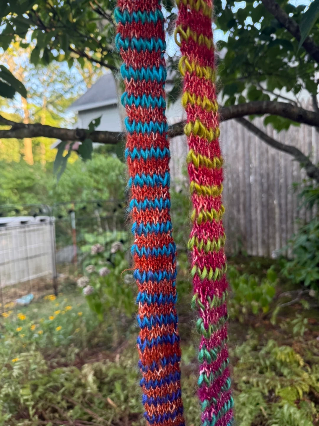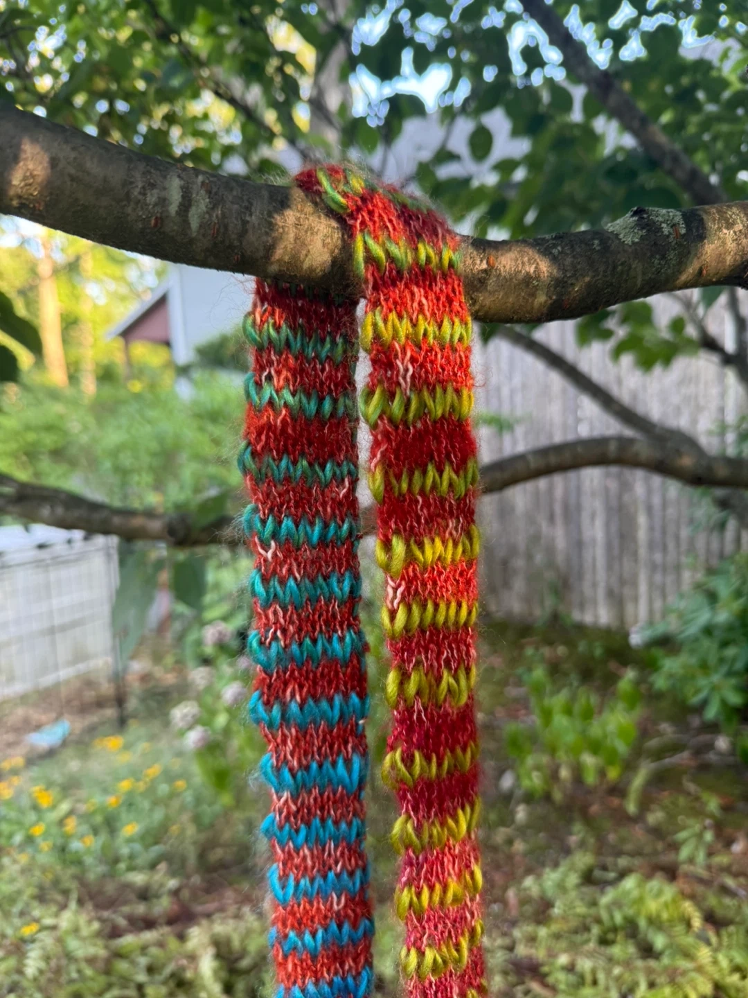 I have a hand-knitted scarf for sale! It features a unique, colorful pattern with a soft, textured feel. Perfect for adding a pop of color to your wardrobe and staying cozy
