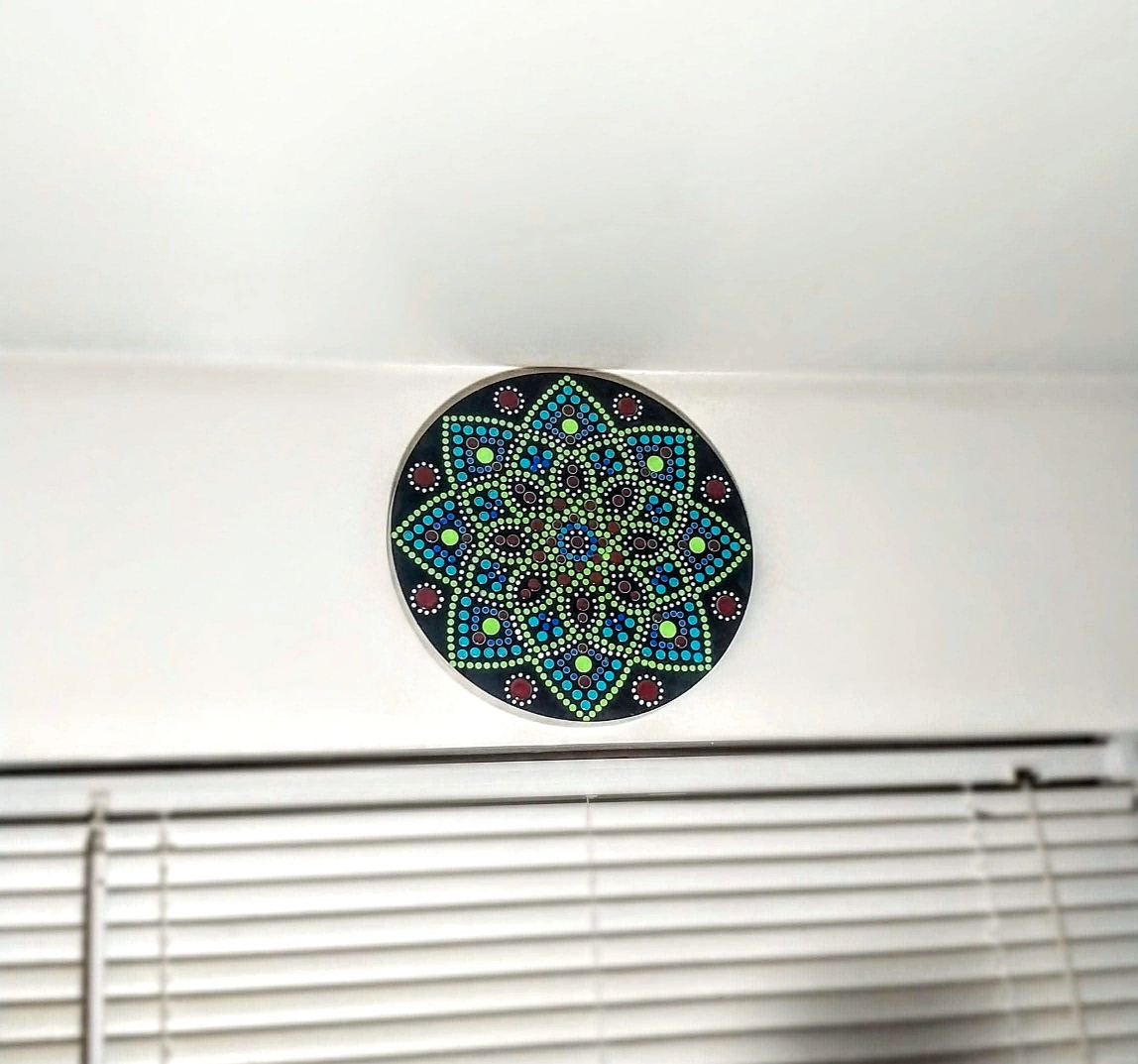Unique Mandala design. Round shape. Various color options available. Painted dots. Great wall decor. ■ I lovingly and meticulously hand-painted, handcrafted each circluar wooden peice with precision and care. Each piece is Inspired by the ancient art of mandala makings, bringing a touch of Eastern tradition to your home. No two are alike!