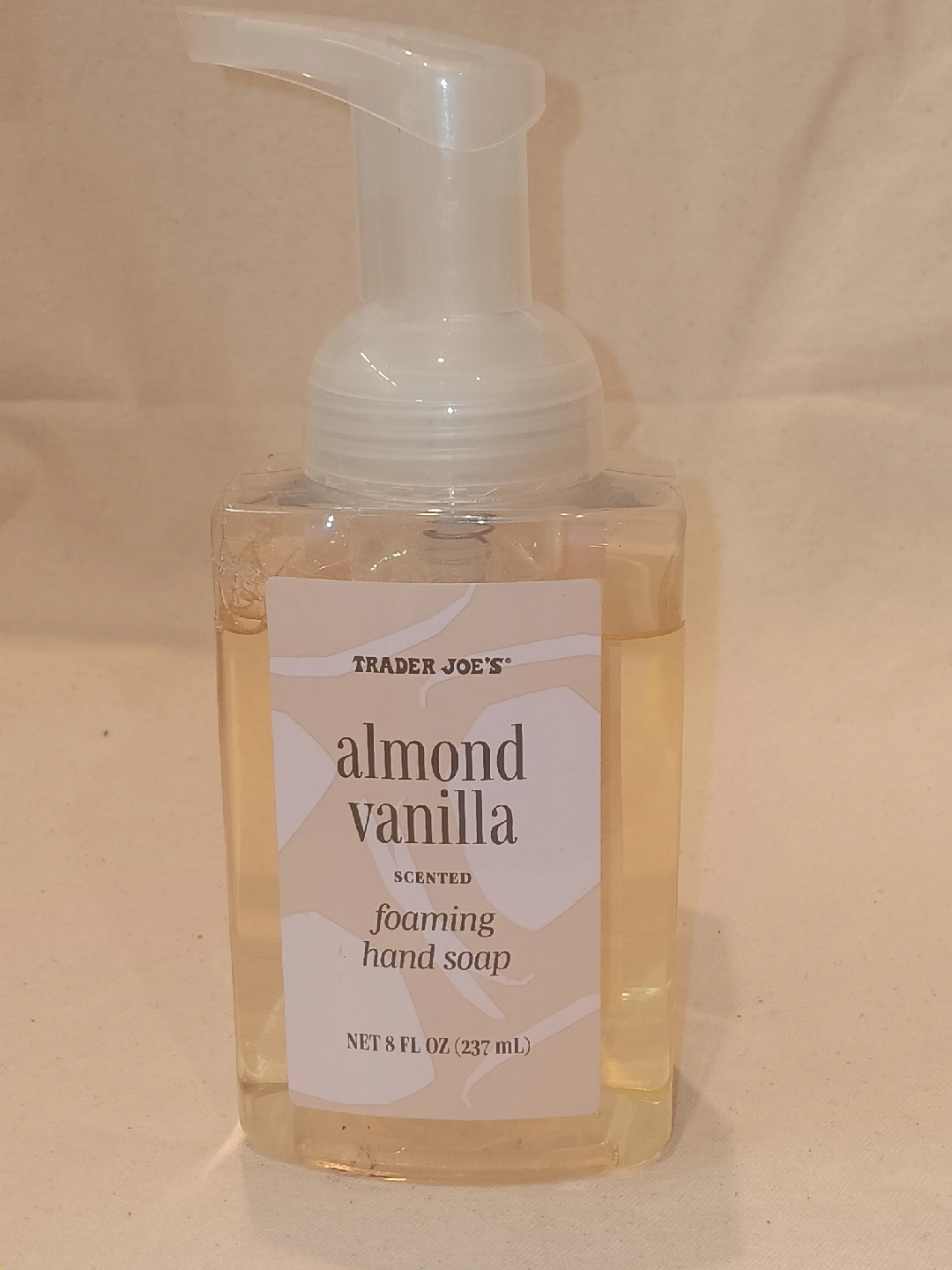 656Selling a bottle of Trader Joe's almond vanilla scented foaming hand soap. The bottle contains 8 fl oz (237 mL).
