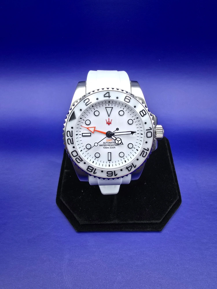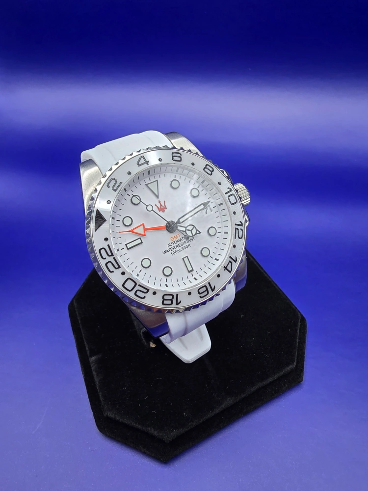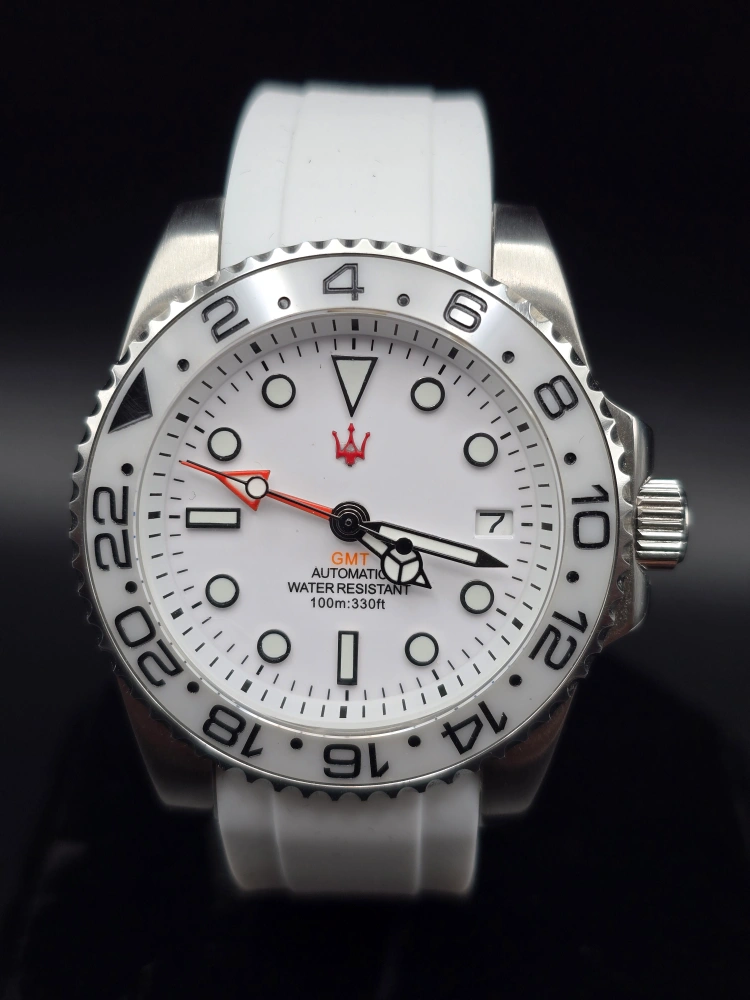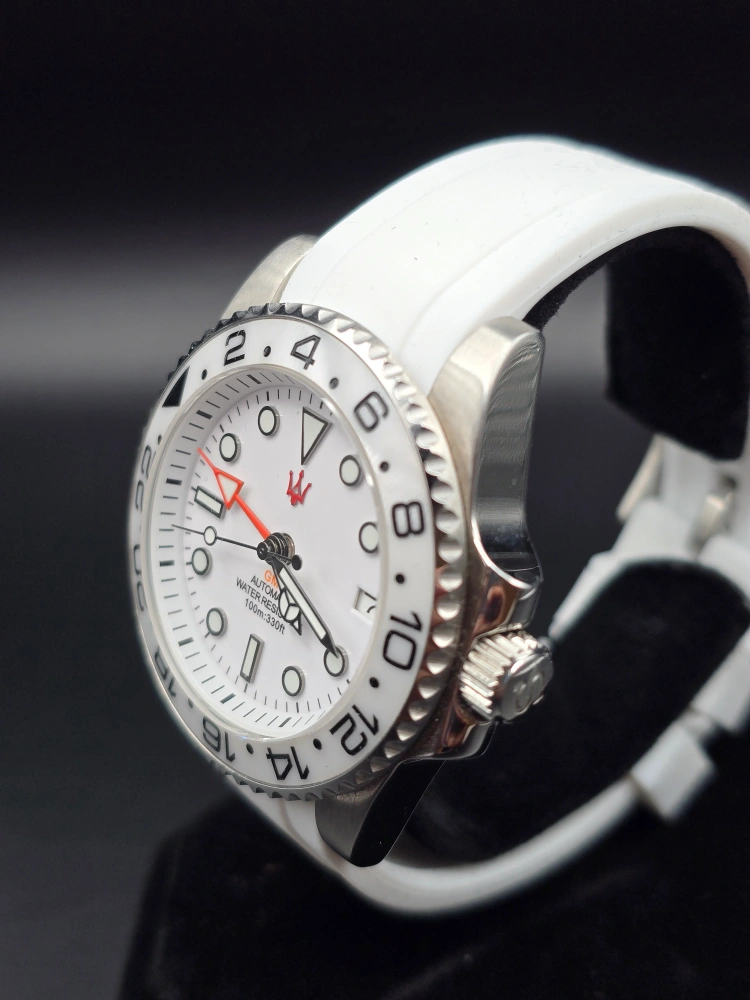 Handcrafted Automatic Watches – Artisan Quality, Technical Precision Discover a collection of three hand-assembled wristwatches—each engineered for mechanical reliability, classic style, and a personal touch. Designed for those who value substance and craftsmanship in every detail. 2. The World Traveler GMT (NH34) Movement: Seiko NH34A automatic, 24 jewels, genuine GMT function Specs: 21,600 bph, ~41-hour power reserve, bi-directional Magic Lever winding Case: Solid 316L stainless steel, 40.5mm diameter without crown, 13mm thickness Dial Size: Fit 28.5–29mm, highly legible date and 24h hand for travel Strap: 20mm lug width Highlight: Keep track of two time zones and master global adventures. Why Choose Our Handcrafted Watches? Each piece is meticulously hand-assembled and quality-checked by a skilled professional custom watchmaker. Built with high-grade materials: 316L stainless steel, quality mineral or sapphire glass, and robust Seiko automatic movements Designed for real-world reliability, accuracy, and daily wear. A handmade watch is more than a tool - it’s a story on your wrist. Own a piece that is crafted for you, not the masses. Limited stock. Message now to reserve your unique, artisan timepiece!