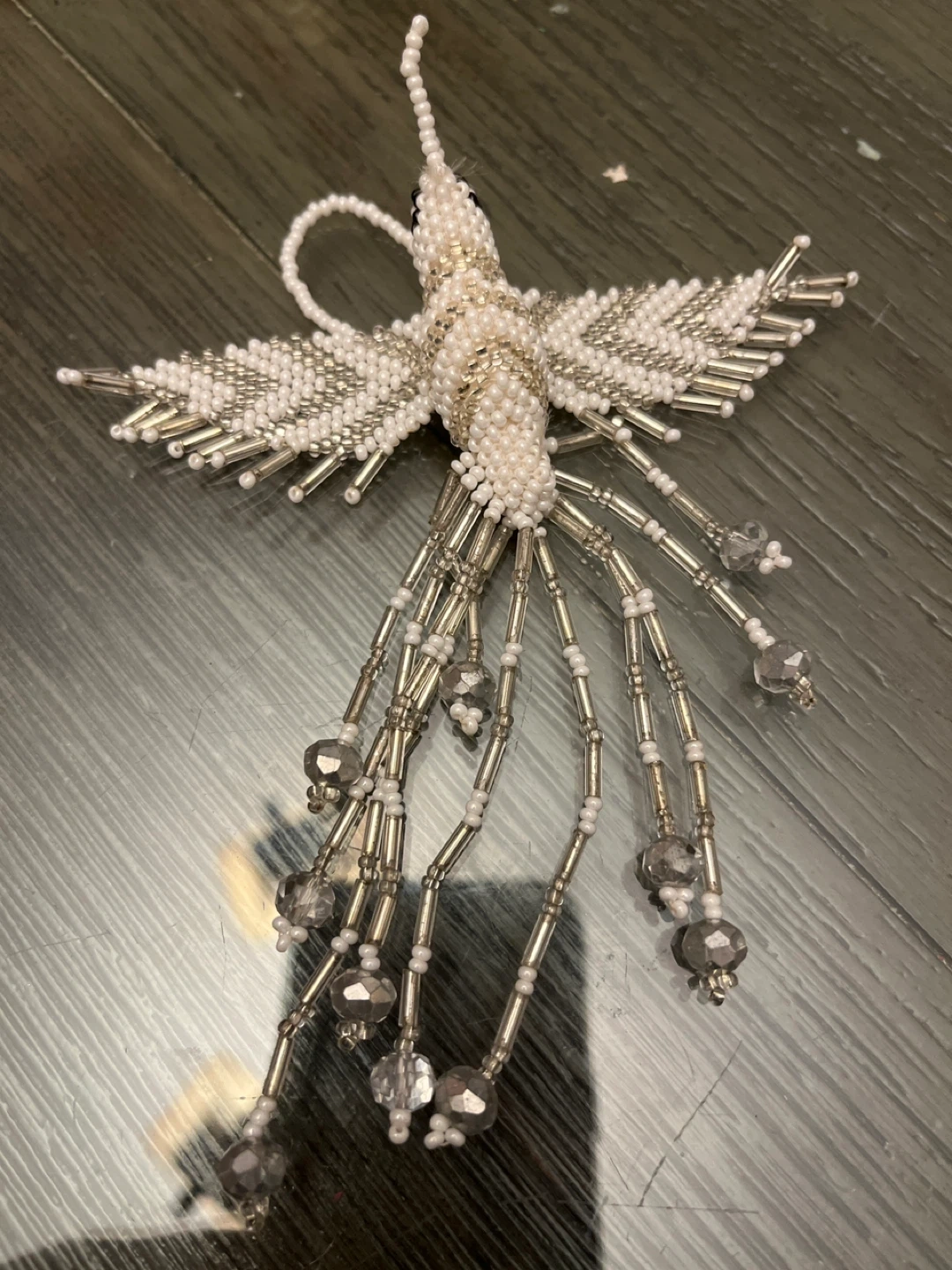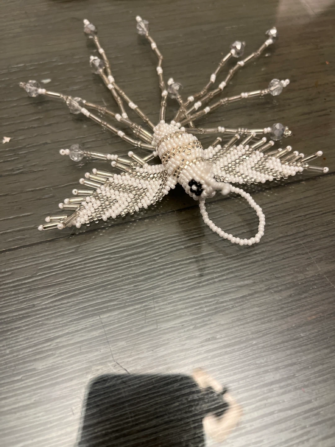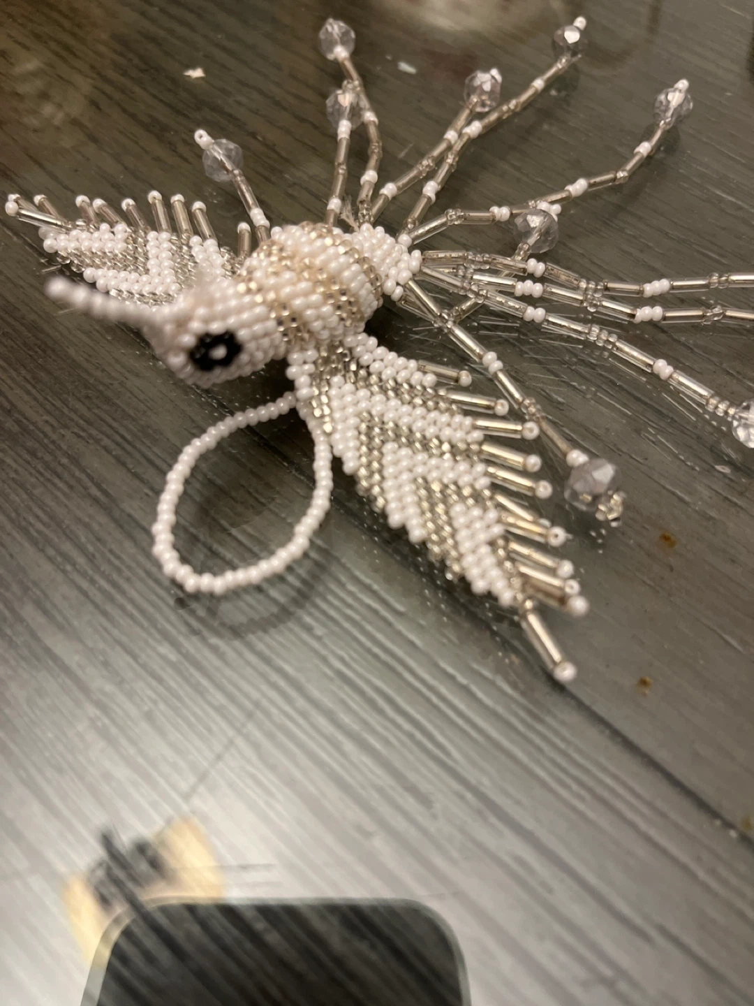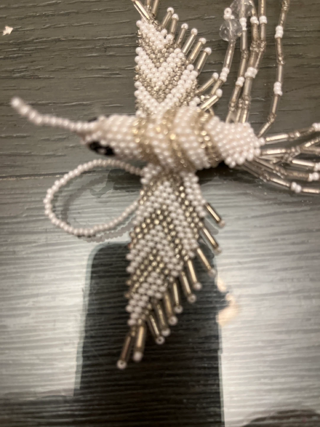 65This is a beautiful handmade beaded hummingbird ornament. It's perfect for adding a touch of whimsy to your home decor