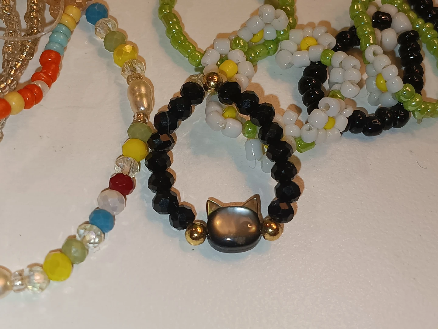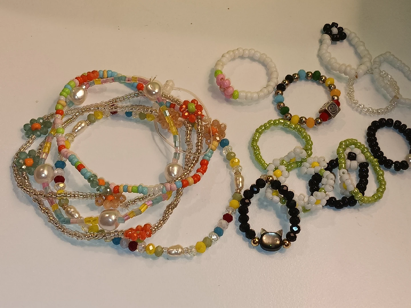 756Here are some cute handmade beaded rings and bracelets! They come in a variety of colors and designs. Perfect for adding a pop of fun to any outfit