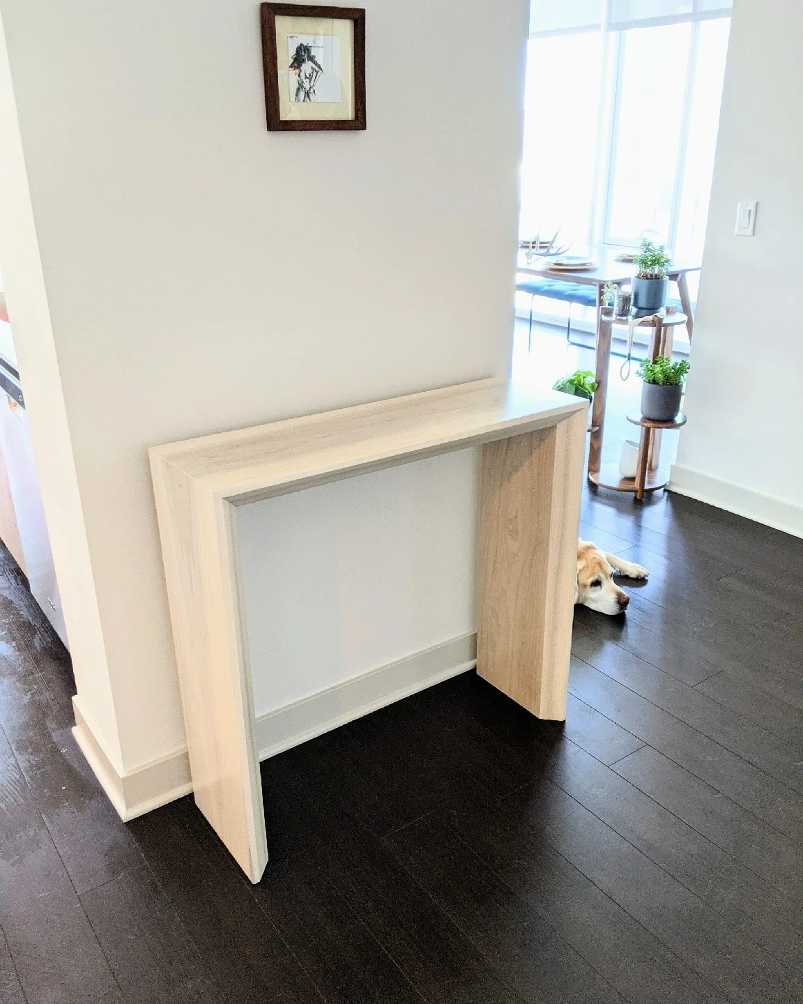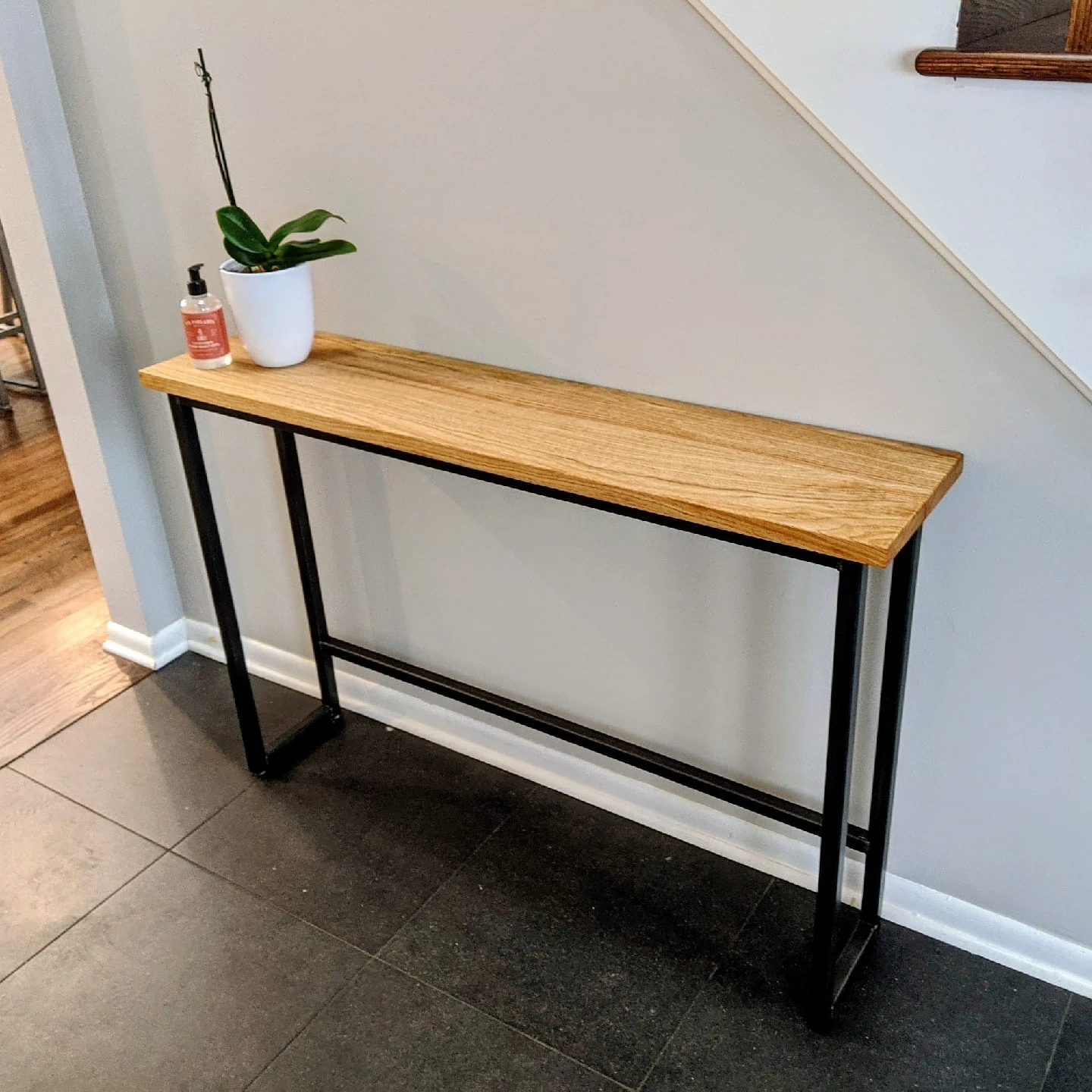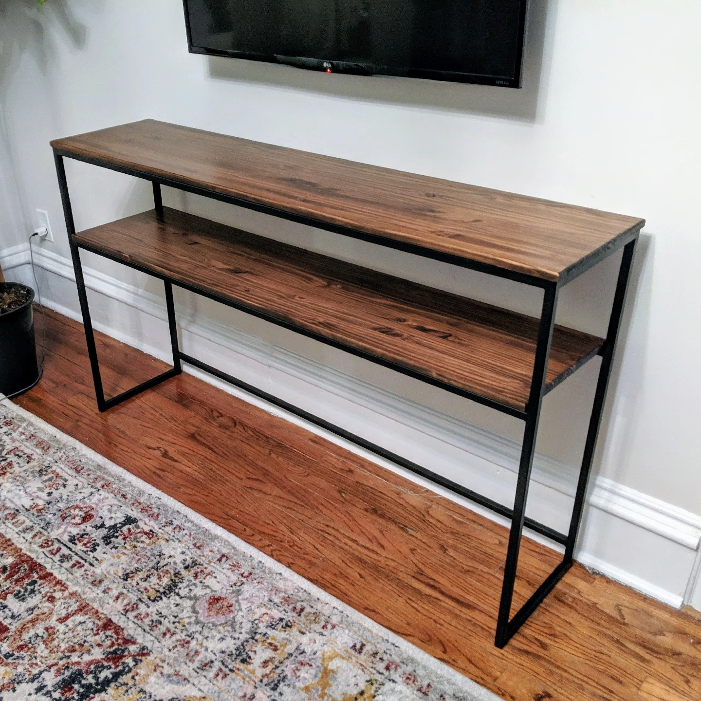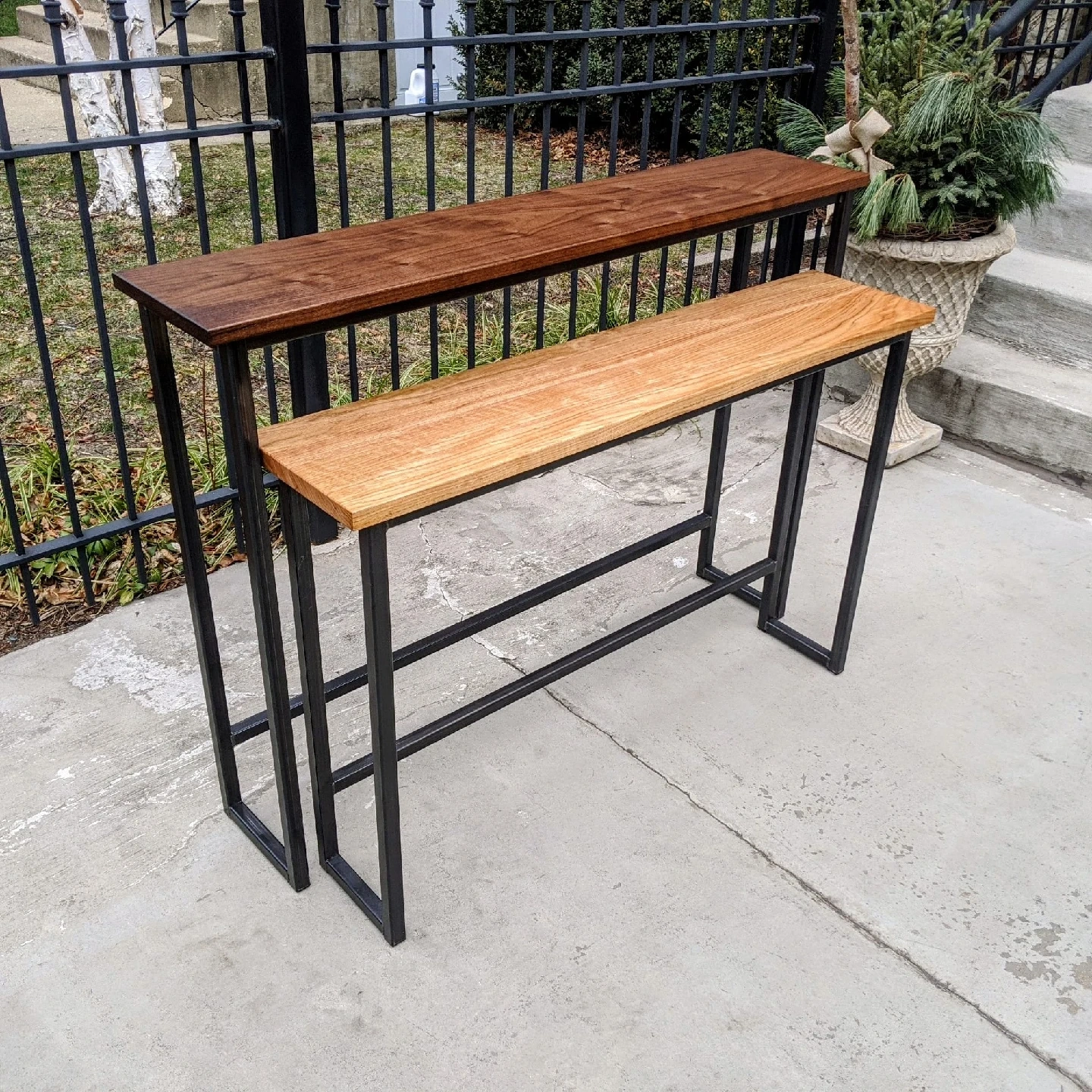10Offering built to order custom console tables in the chicagoland area. Typical console at listed price would be 32"x10"x32"h with a stained pine top and a natural clear coated steel base. dimensions can be customized for a range of table/desk types. maximum size 120" long, 42" wide, up to 42" tall . Delivery available