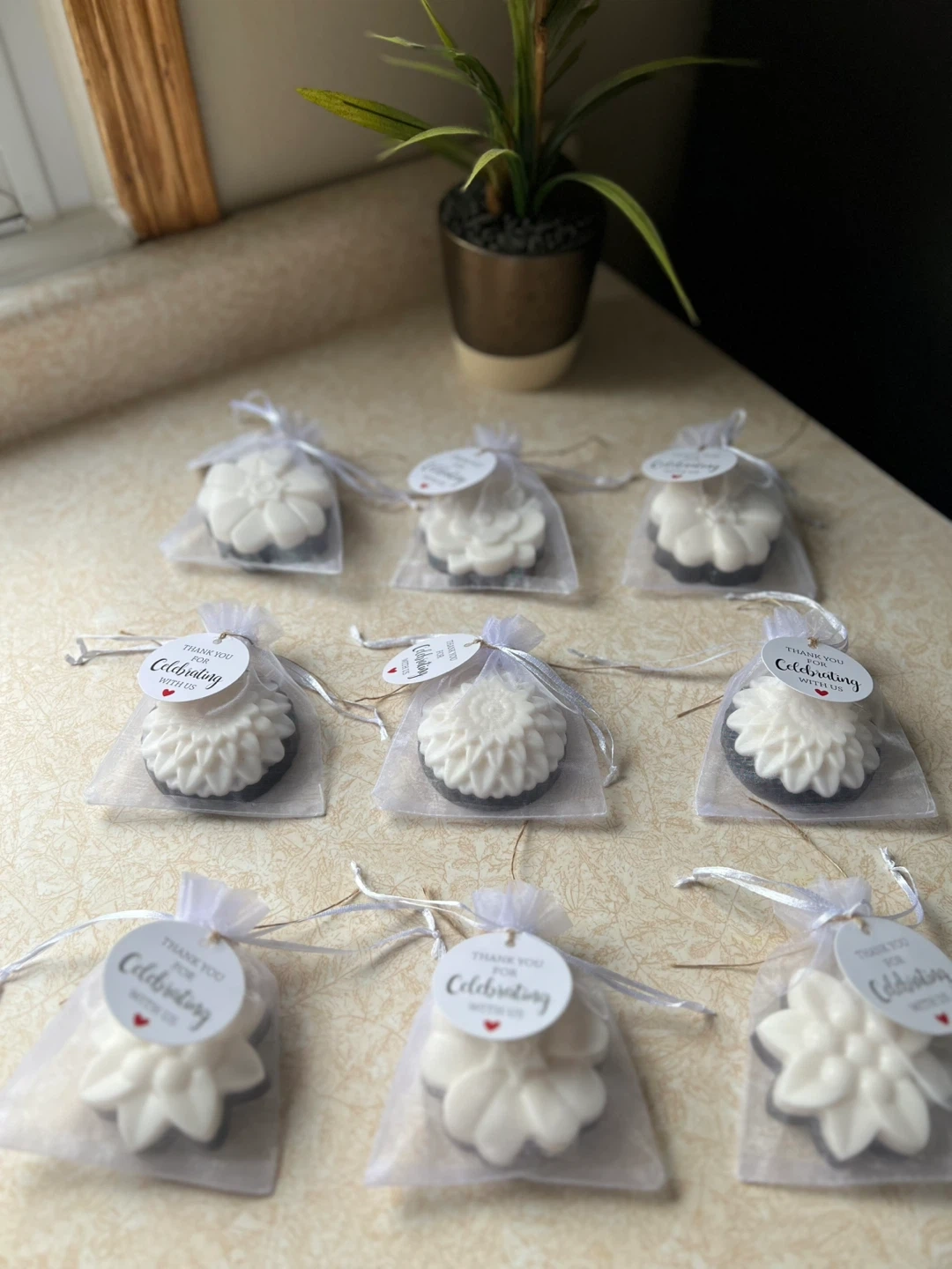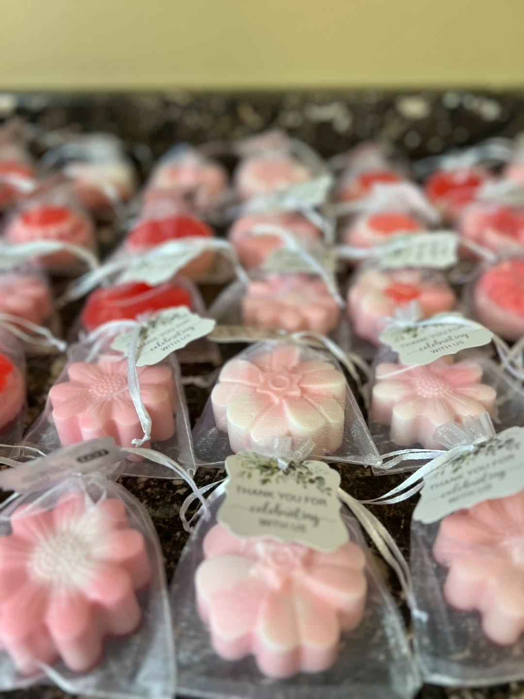 I'm selling handmade decorative soaps. They come in a variety of colors and designs, perfect for party favors or small gifts! Each soap is individually wrapped with a tag. Great for party favors for weddings, showers, and all kinds of special events. Dm if interested or to place an order Discount available if ordered in bulk