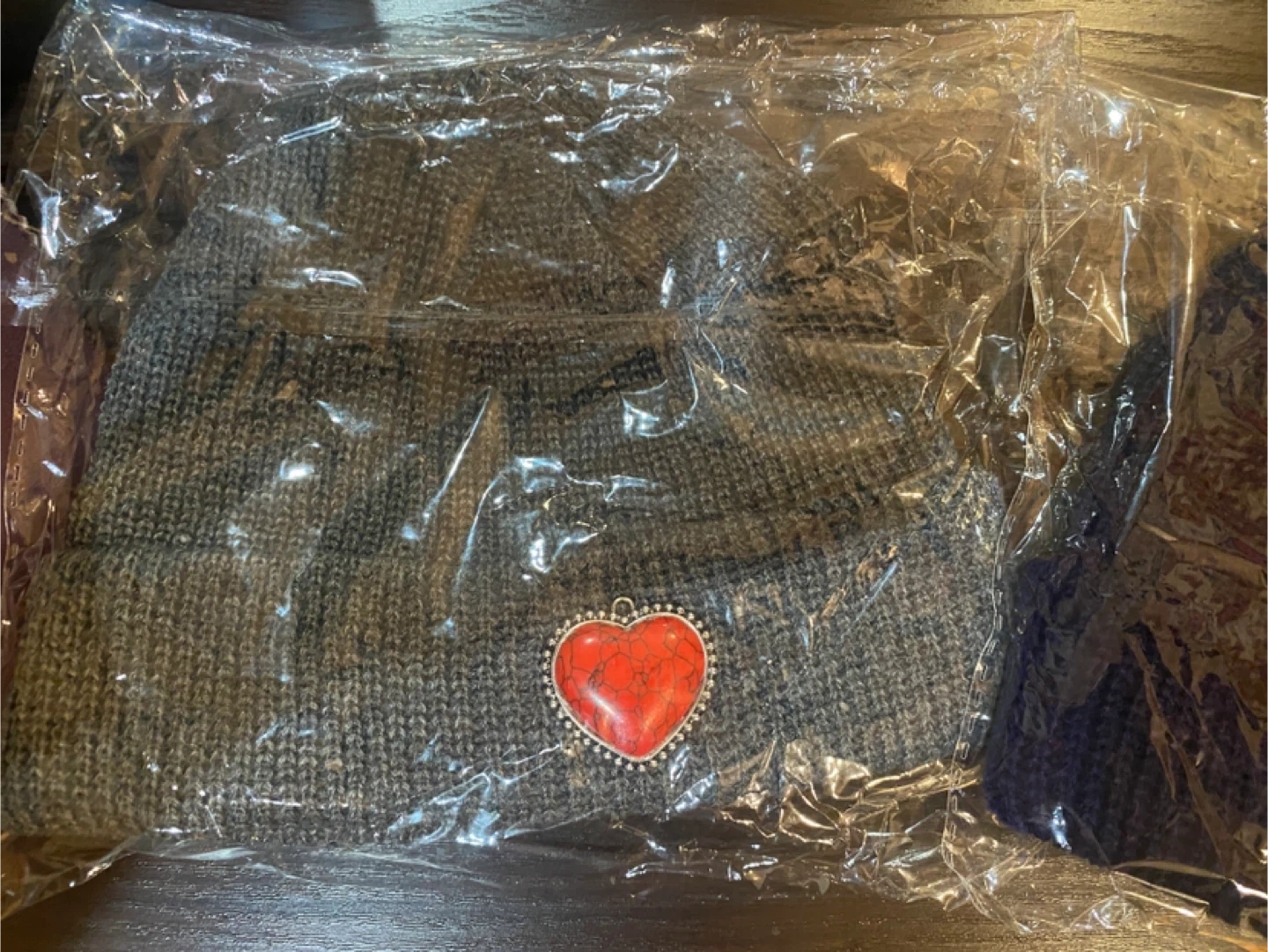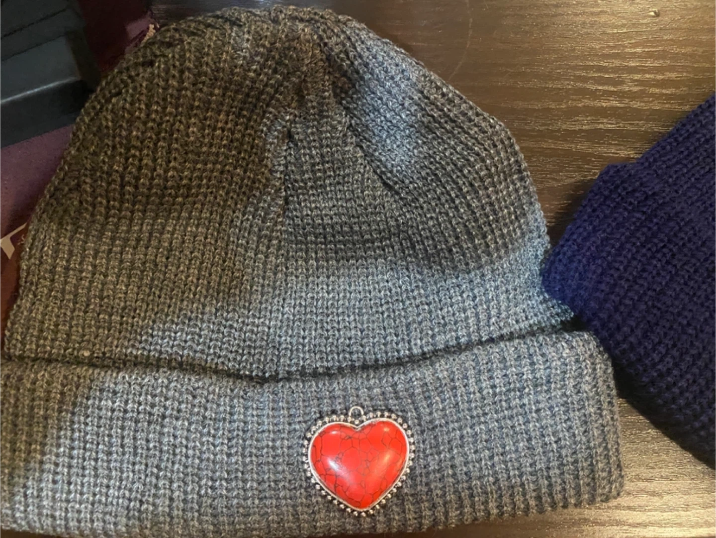 49Selling a handmade gray beanie, still in its original packaging! It features a cute heart charm, adding a unique touch. Perfect for keeping warm and stylish!