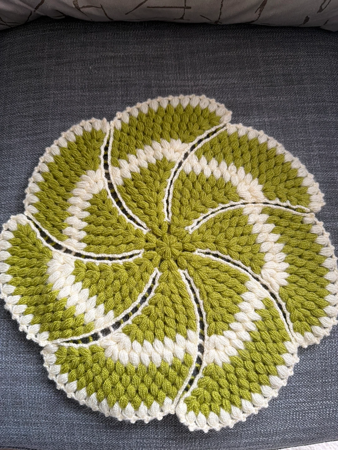65This is a handmade crochet loofah in a lovely green and white pattern.