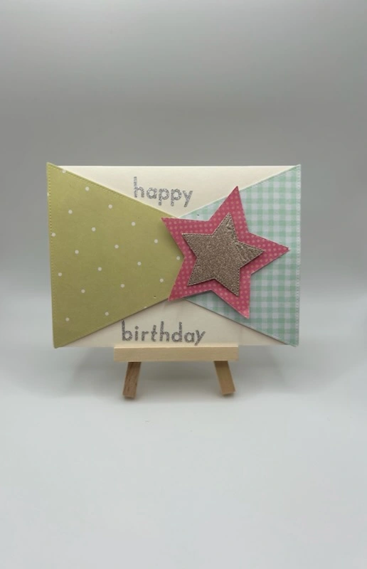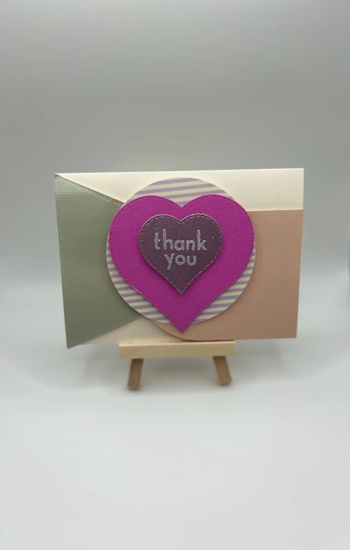 5Two handmade greeting cards. One says 'thank you' and the other says 'happy birthday'.