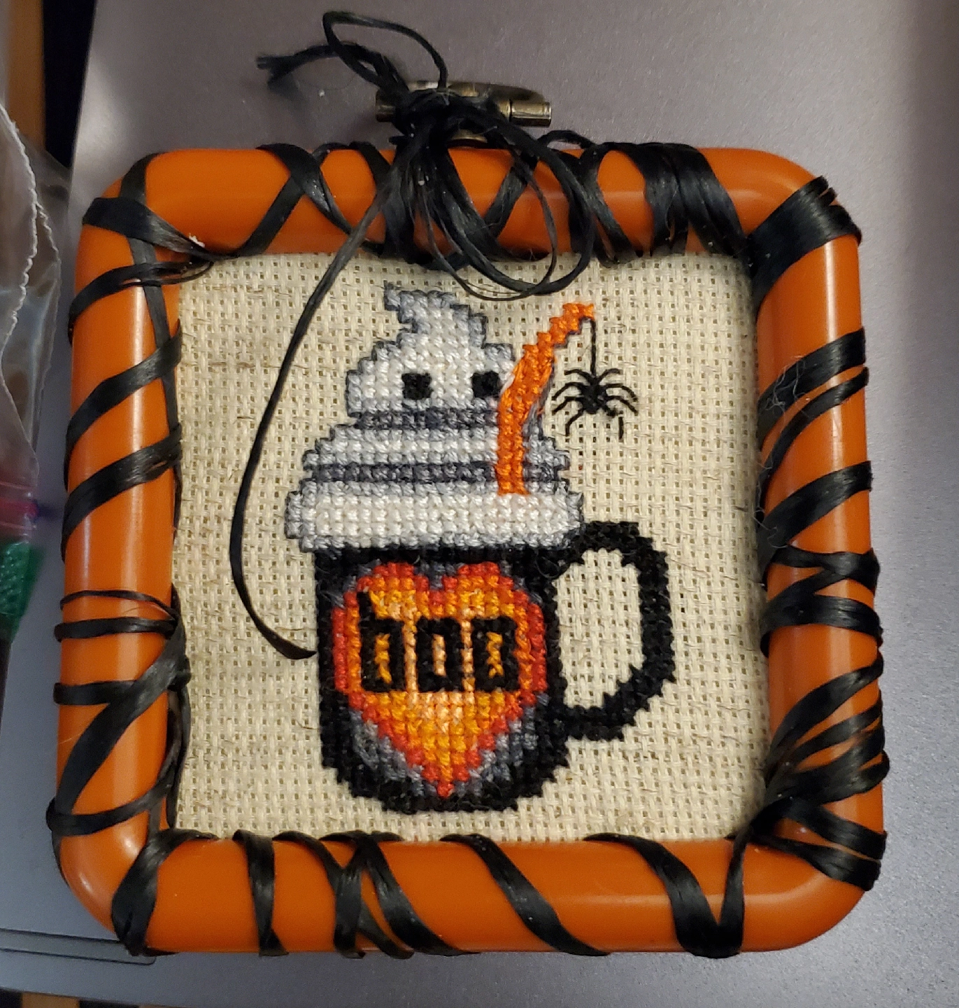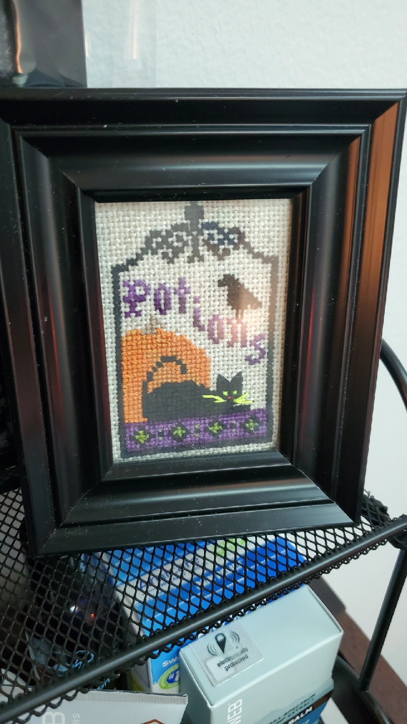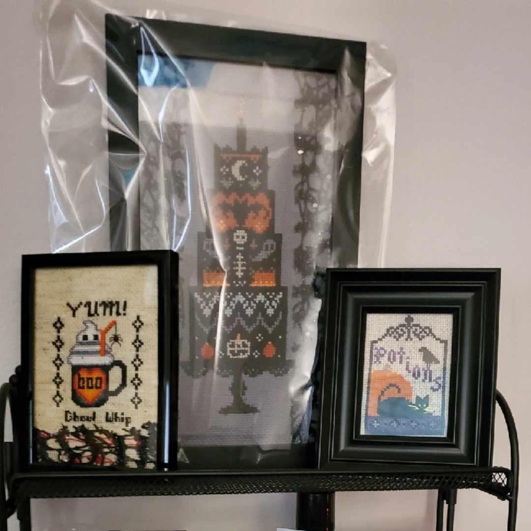 Halloween Framed Cross Stitch Art - Witch, Ghost, Pumpkin