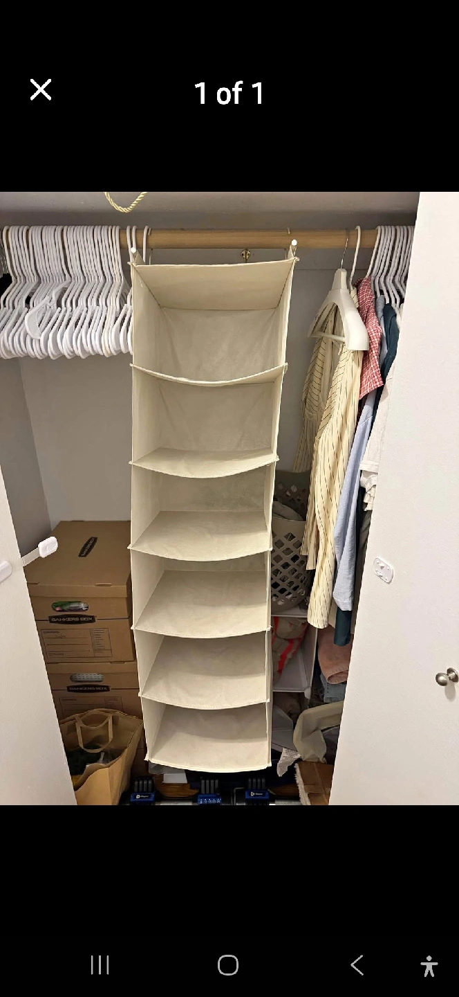 Declutter your closet with this handy hanging organizer! It features six shelves to maximize your storage space. Perfect for keeping clothes, shoes, or accessories neat and tidy