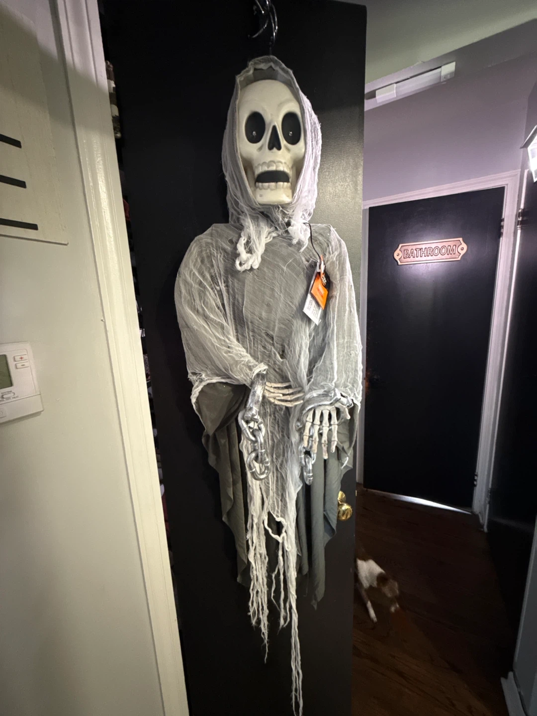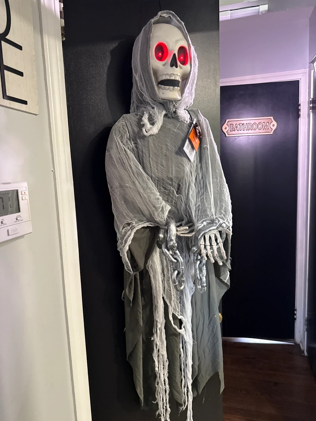I'm selling a hanging Grim Reaper Halloween decoration. It's in great condition and ready to add some spooky fun to your Halloween setup