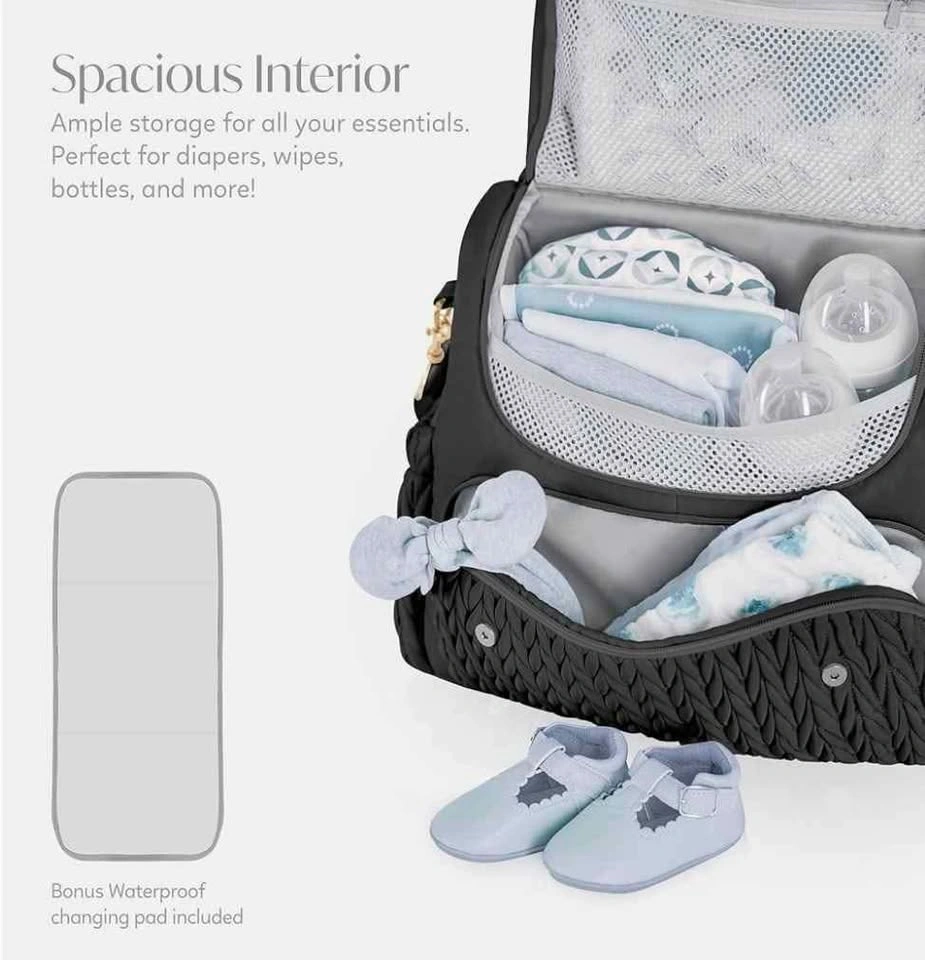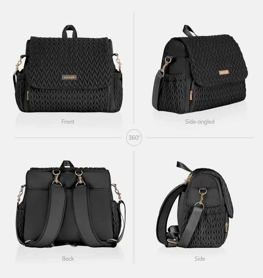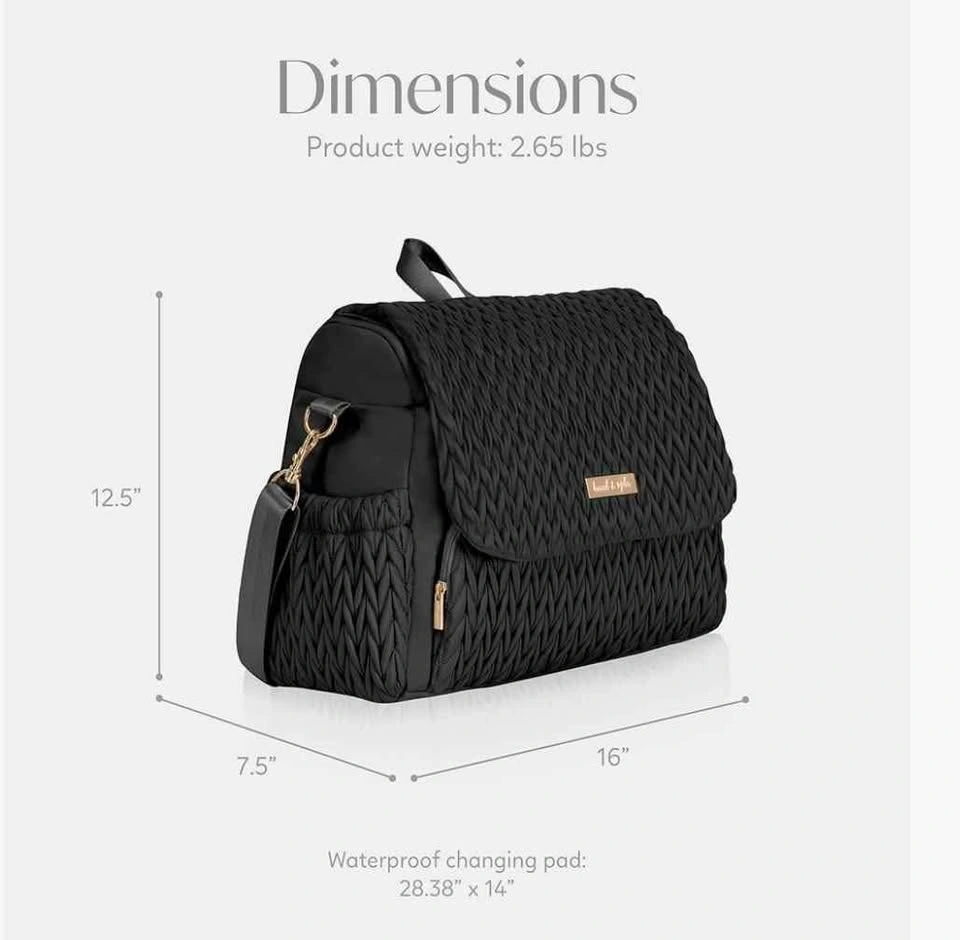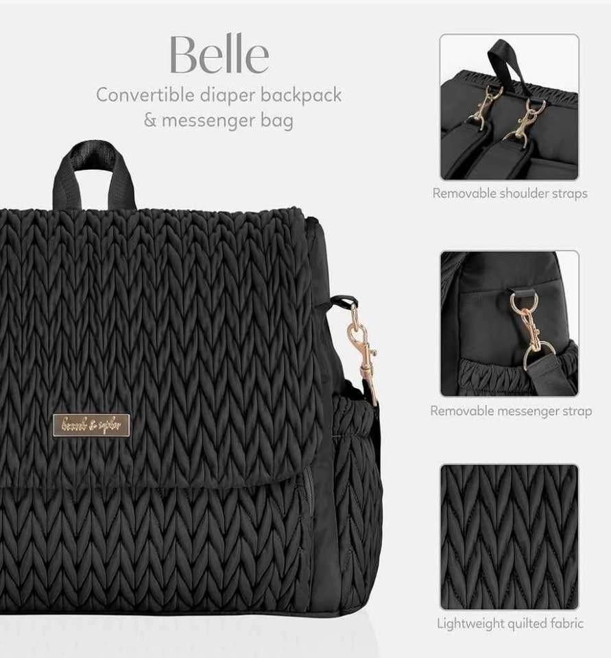 81New in the Box! NEVER USED! Calling all Stylish Mamas! Meet the Hannah & Sophia Belle Convertible Diaper & Messenger Bag, made to complete your #OOTD or #OOTN with no worry about space or comfort! This convertible Diaper Bag comes with detachable shoulder straps allowing you to easily transition from day (backpack) to night (messenger). Crafted with durable fabric, it comes with a large storage space, 3 zippered pockets, 4 outer pockets (can be used as storage for backpack straps) & 5 inner pockets. This fashionable & versatile bag keeps your convenience in mind with its waterproof changing pad. The snug pockets allow you to fit all your little one’s necessities like diapers, wipes, creams and much more! This slay-worthy bag comes with intricate design, subtle gold detailing & is available in 4 chic finishes - delicate Rose Pink, classy Black, Sage Green and Moonmist Blue! What’s more, the Belle is the proud winner of the 2023 Baby Maternity Magazine Awards & the 2023 Creative Child Magazine Awards. This roomy & spacious diaper bag has a weight capacity of 6.6 Lbs with dimensions of 16" W x 7.5” B x 12.5” H. Changing pad dimensions: 28.38” L x 14” W. UBER SPACIOUS: The award-winning Hannah and Sophia Belle Convertible Diaper and Messenger Bag comes with a large storage space, 3 zippered pockets, 4 outer pockets (can be used as storage for backpack straps) and 5 inner pockets. DAY TO NIGHT: This Convertible Diaper Bag comes with detachable shoulder straps making it versatile to transform from a backpack to a messenger bag, seamlessly. CHANGES ON THE GO: The Hannah and Sophia Belle Convertible Diaper Bag and Messenger Bag comes with a dual-sided changing pad that boasts of a lining fabric on one side and a waterproof plastic fabric on the other. Dimensions: 28.38” L x 14” W FASHIONABLE and TRENDY: Comes with an intricate design, subtle gold detailing and is available in 4 chic finishes - delicate Rose Pink, classy Black, Sage green and Moonmist Blue.To clean, gently wipe with a damp cloth. PRODUCT SPECS.: The Hannah and Sophia Belle Convertible Diaper Bag and Messenger Bag has dimensions of 16" W x 7.5” B x 12.5” H with a generous weight capacity of 6.6 Lbs.