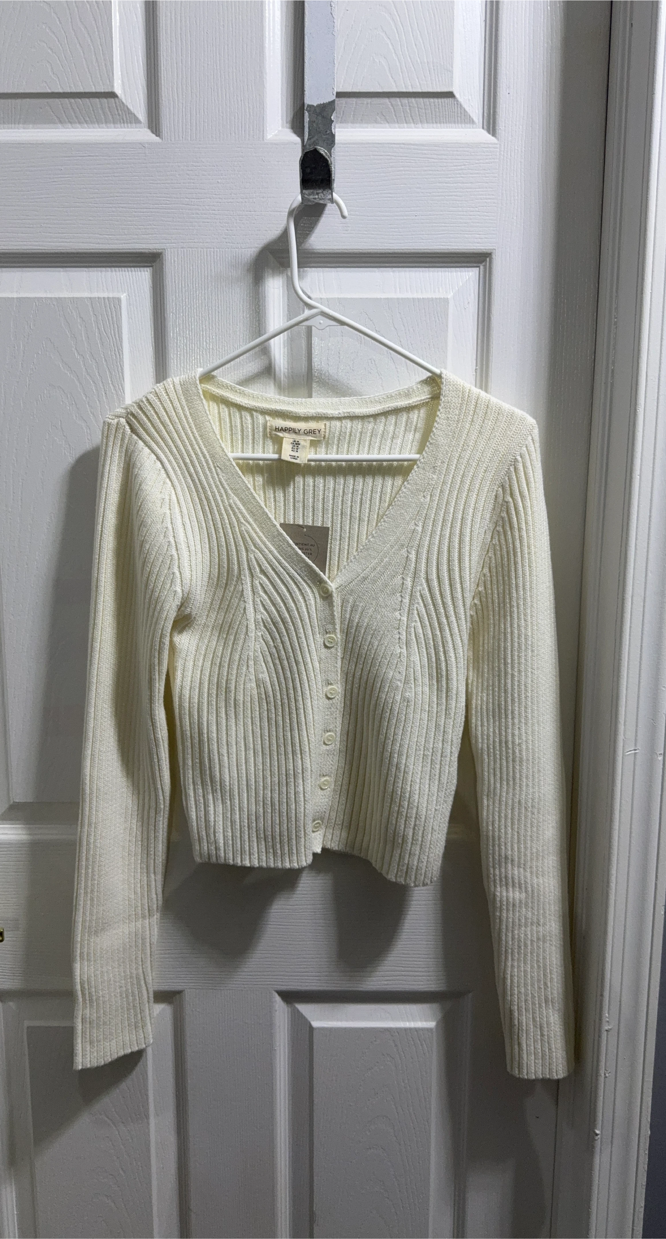 This is a Happily Grey cream cardigan in size M brand new . It's a beautiful, soft piece that's perfect for layering