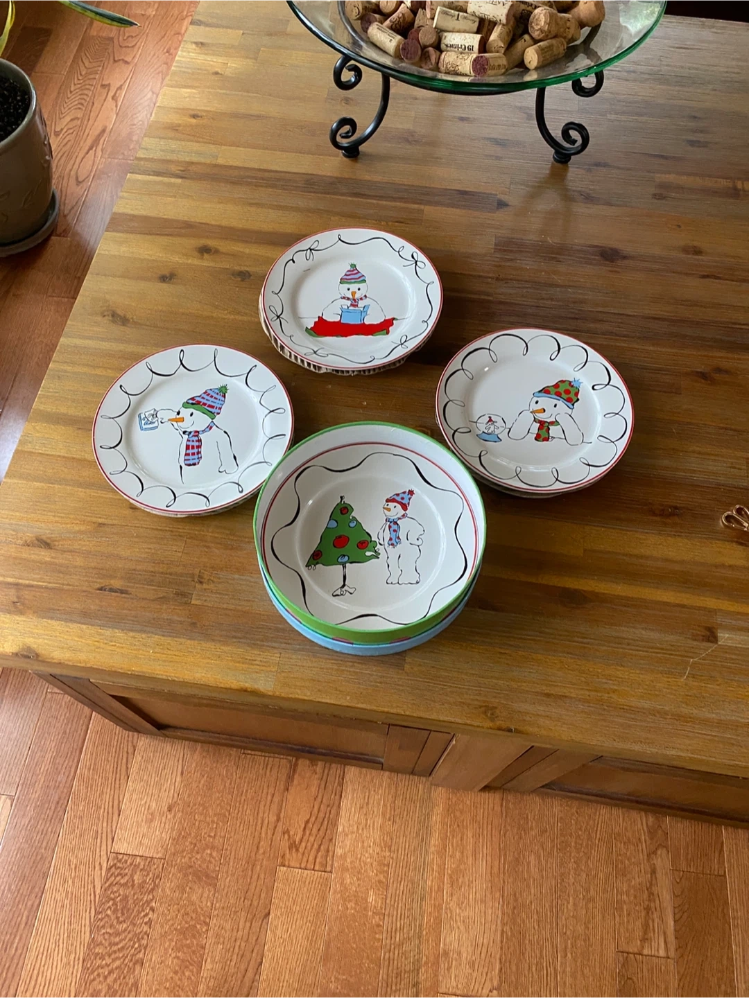 Selling a set of 4 charming 'Happy Holidays' plates featuring adorable snowman designs! These festive plates are perfect for adding a touch of winter cheer to your dining table during the holiday season. They are in great condition and ready to bring joy to your home!