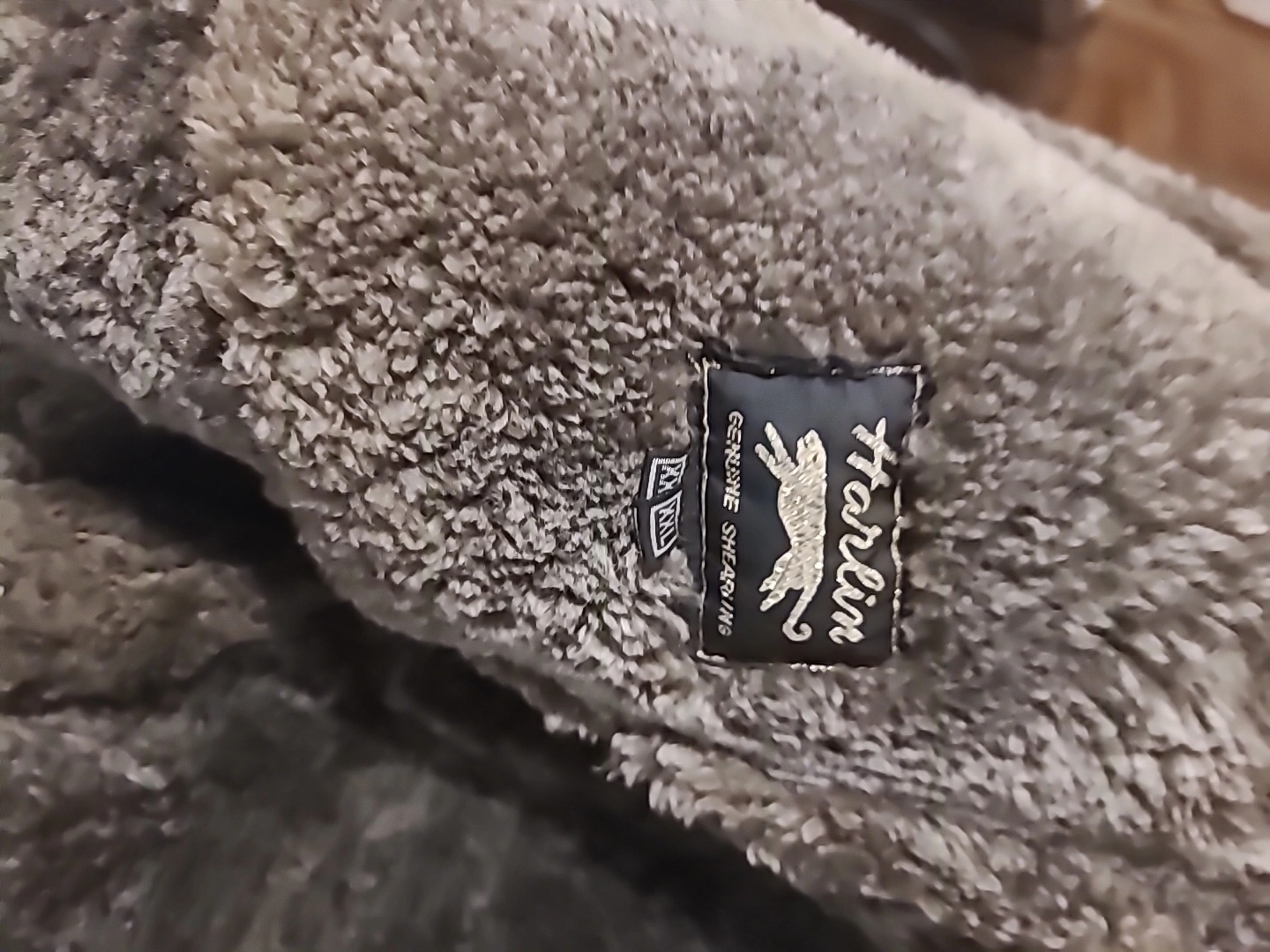 65Selling a Harlin genuine shearling jacket in size XXL. The jacket is brown leather with a shearling lining and trim. It's in good condition and ready for a new owner!