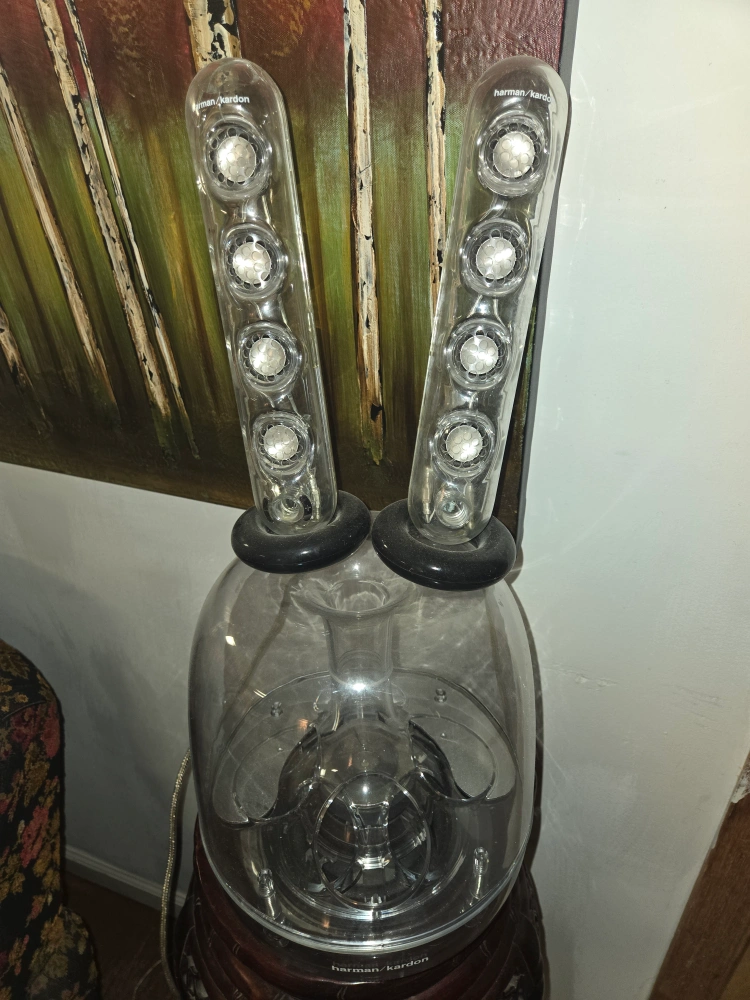 Selling a Harman Kardon SoundSticks III 2.1 channel speaker system! This system features a subwoofer and two satellite speakers, providing great sound quality. Perfect for your home or office setup