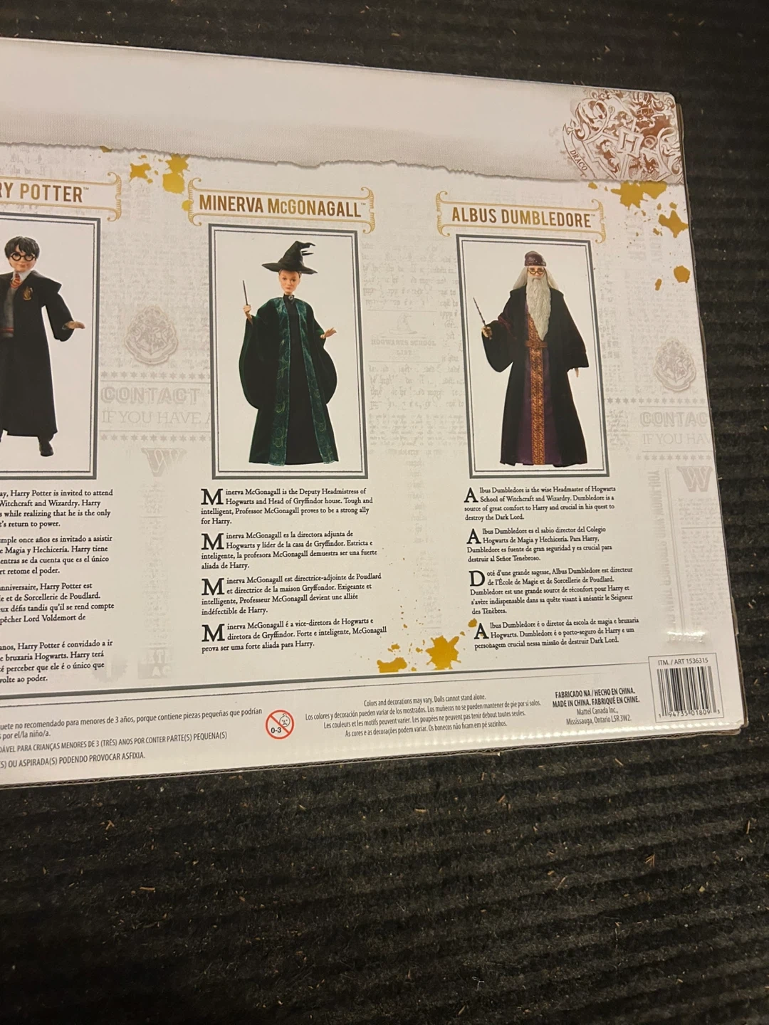 Selling a Harry Potter Wizarding World Collector Dolls Set. The set includes Harry Potter, Ron Weasley, Hermione Granger, Albus Dumbledore, and Minerva McGonagall dolls. Recommended for ages 6+ Located round lake beach 60073